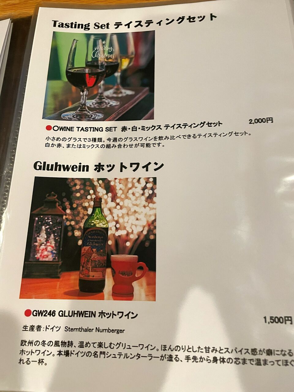 ワインは3種類飲み比べの出来るテイスティングセットを白赤注文♪