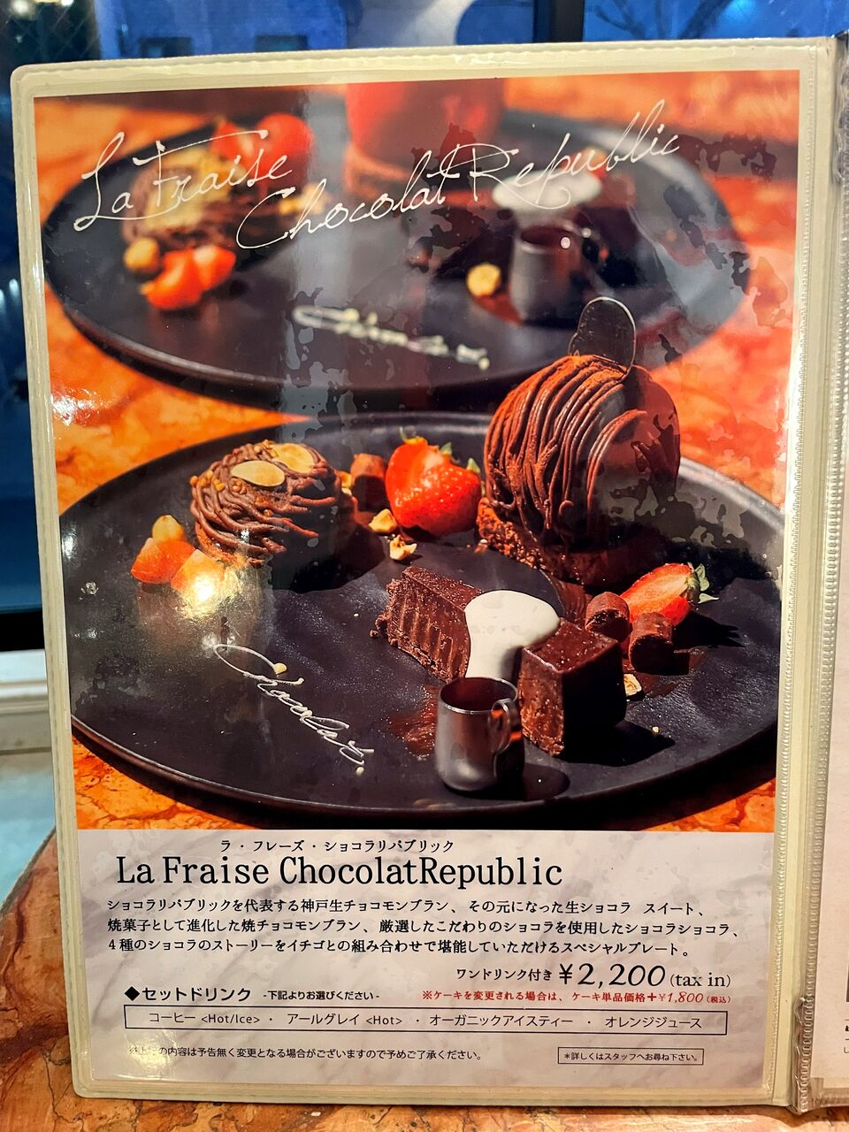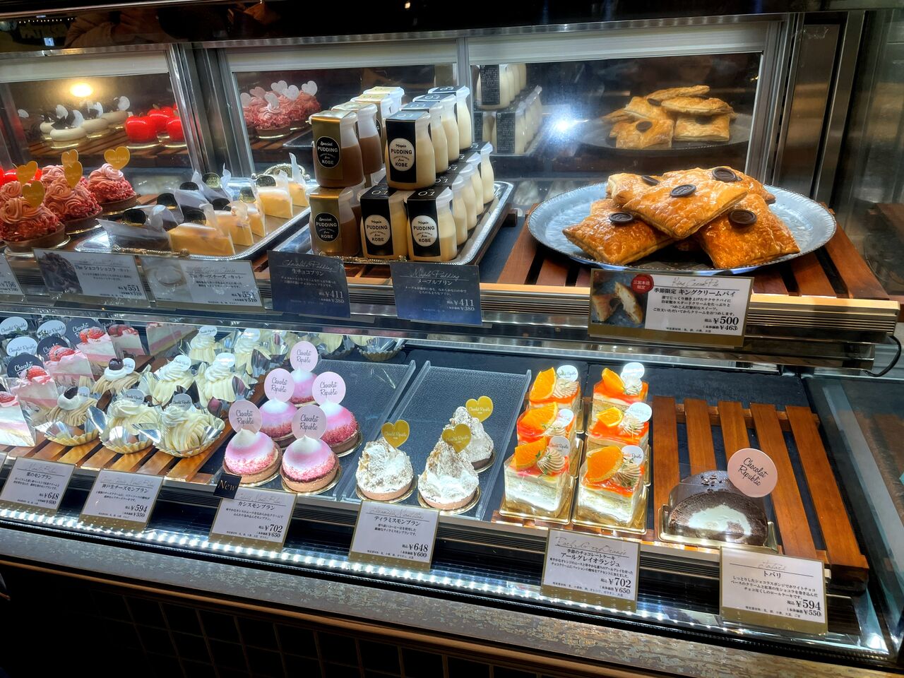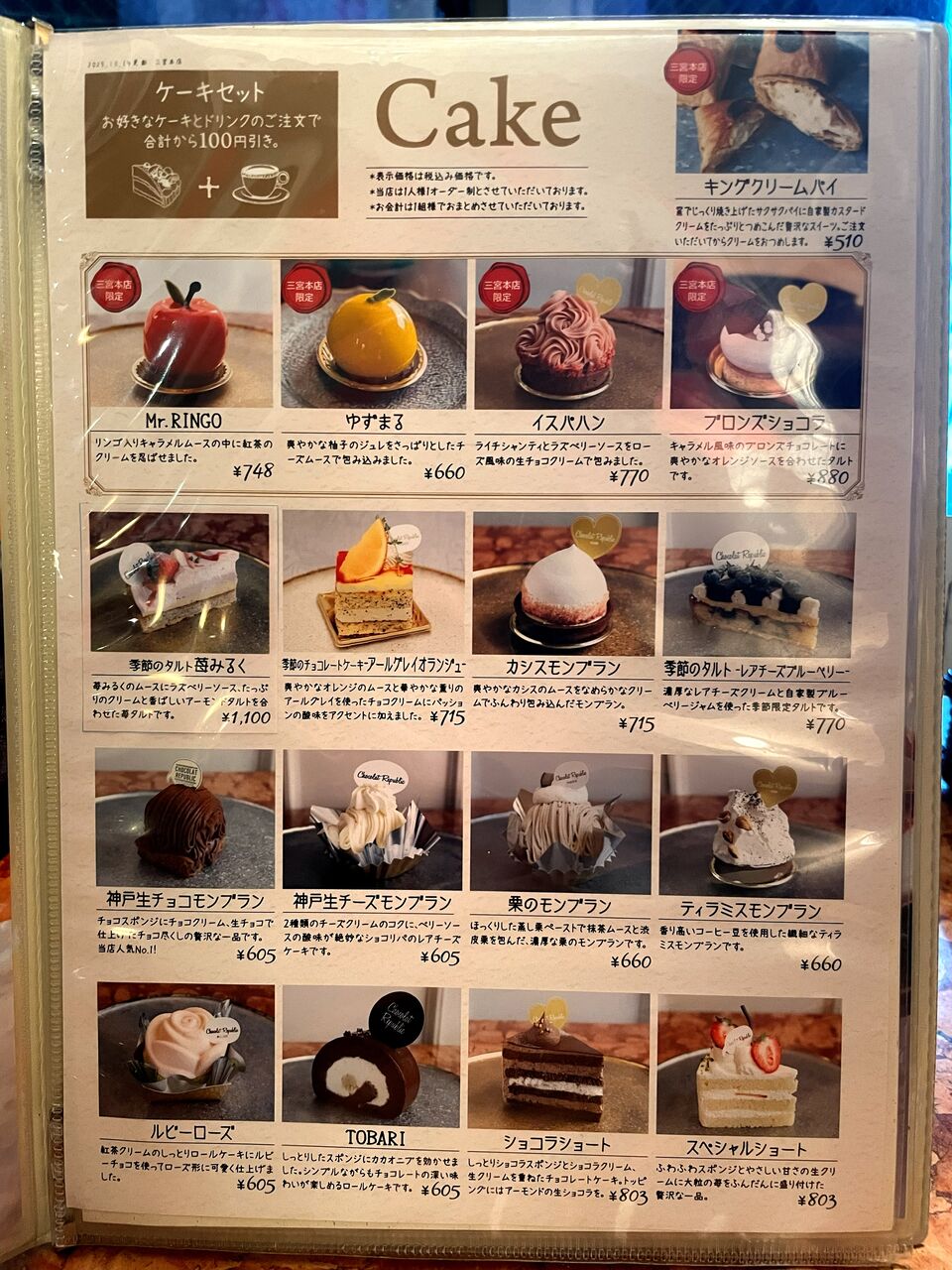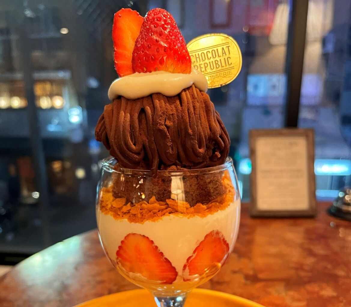 2025年12月17日 神戸 生チョコモンブランパルフェ♪《ショコラリパブリック》 先日、デザートを食べに行きました。お店は 『 ショコラリパブリック 』です。神戸市中央区加納町にある1階がケーキ屋さん、2階がカフェになっているお店です♪気になっていたので訪問してみました(^^)1階のケーキ屋さんのショーケースには美味しそうなケーキが並んでいます♪この日は2階のカフェを利用しました♪階段を上がって中に入ると店内はこんな感じ落ち着いたソファー席の店内です。お水はセルフです♪メニューはこんな感じどれも美味しそうです(^^)注文したのはこちら神戸生チョコモンブランパルフェ♪ケーキがまるごと1つ乗ってるパフェです♪美味しくいただきました(^^♪こちらはコーヒー♪ キングクリームパイ♪サクサクの生地の中にカスタードクリームがたっぷり入ってます(^^♪美味しいモンブランパフェに満足でした♪また近くに来た時には美味しいスイーツを食べに再訪したいと思います(^.^)ショコラリパブリック 三宮本店神戸市中央区加納町4-8-7078-321-3666定休日 無休 ショコラ リパブリック 三宮本店 関連ランキング:ケーキ | 三宮駅(神戸市営)、三ノ宮駅(JR)、三宮駅(神戸新交通)