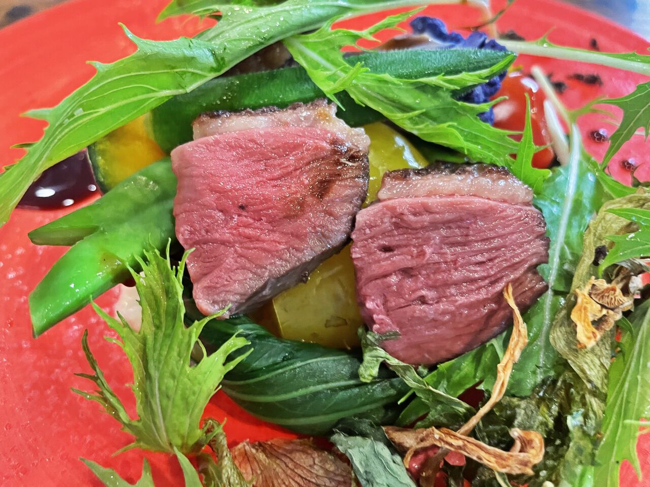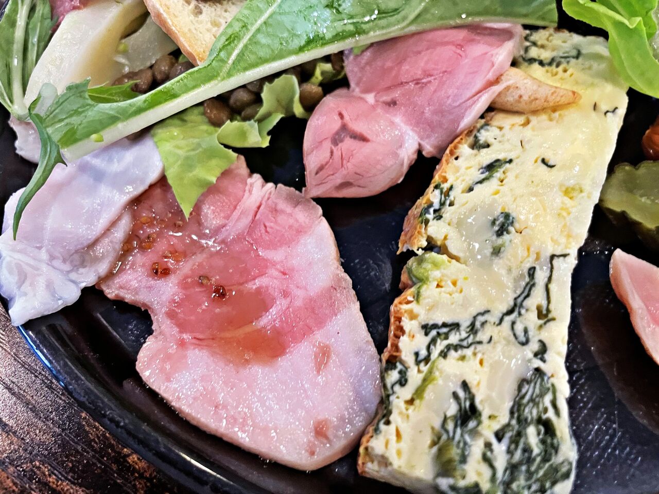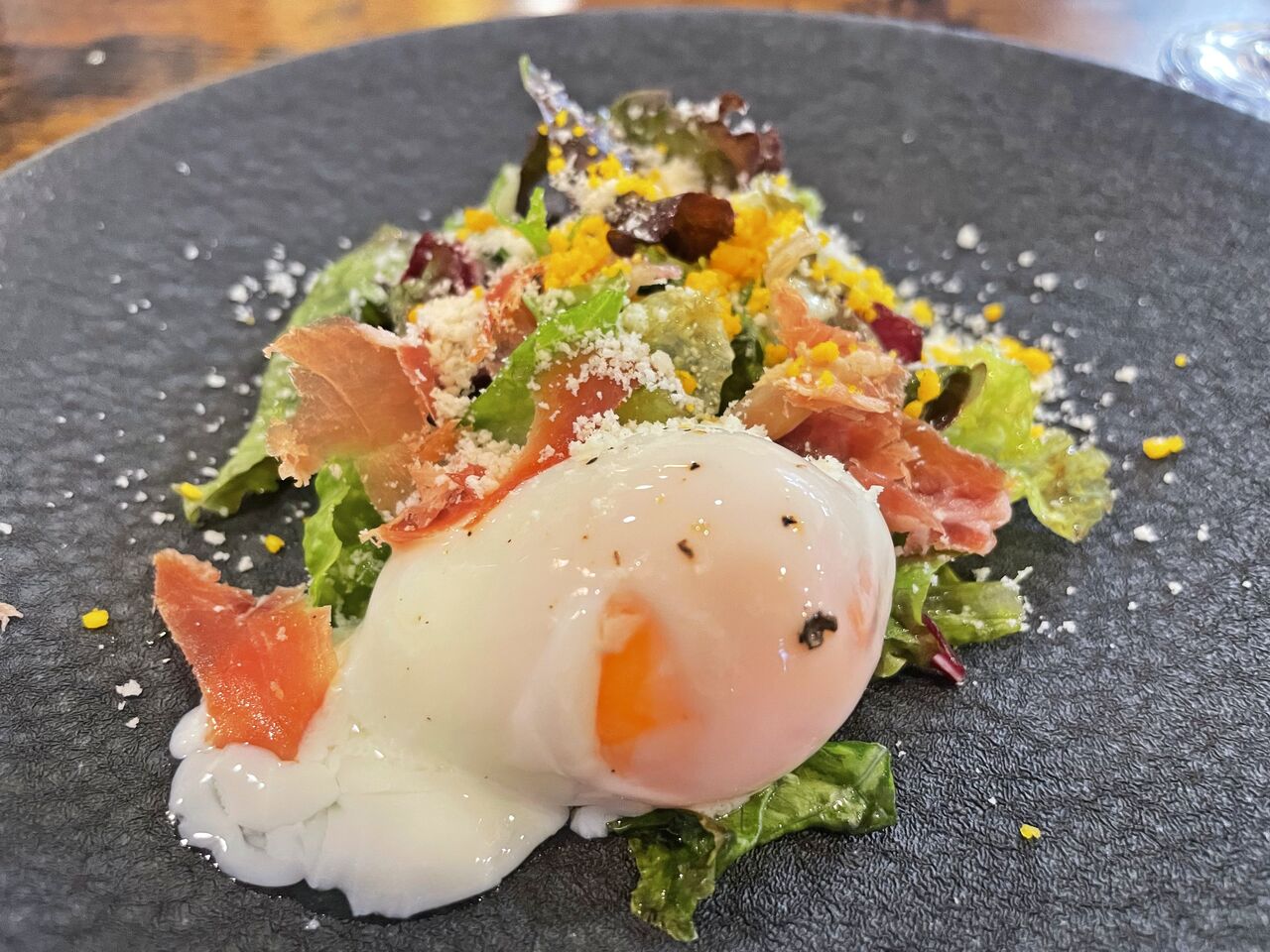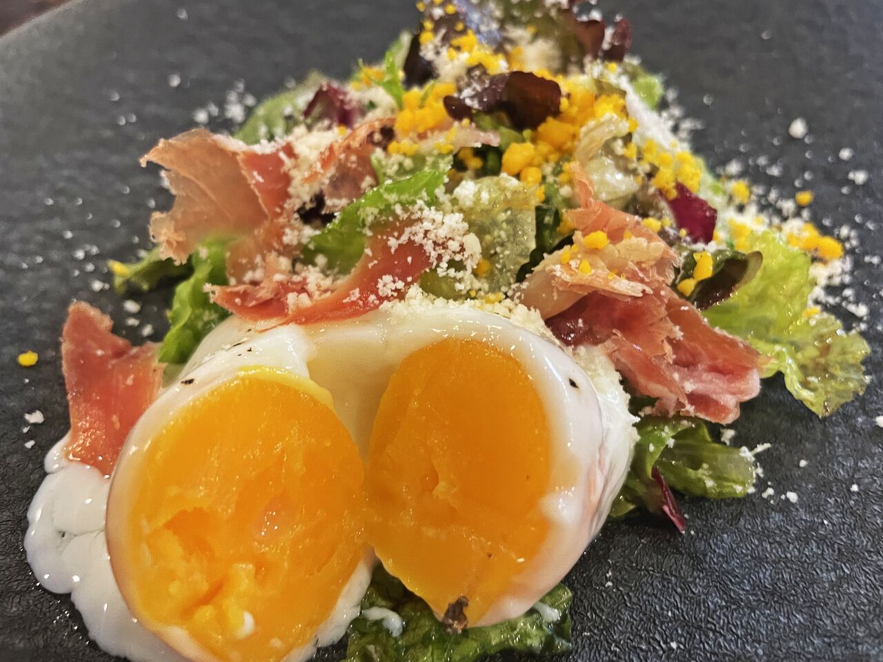 18カ月熟成の生ハムサラダ 温玉添え香り豊かなチーズと共に♪
