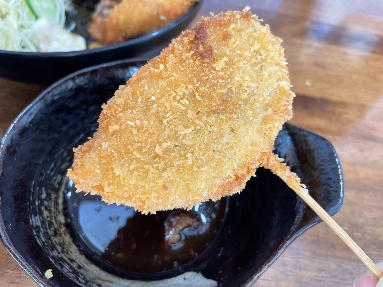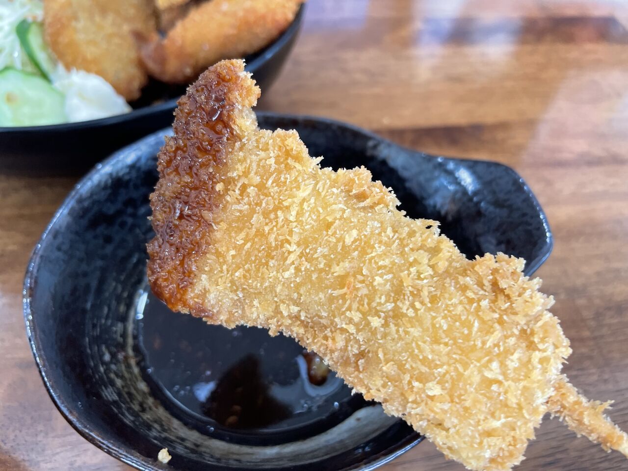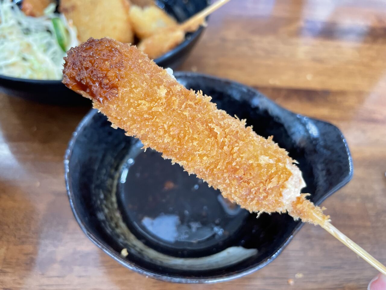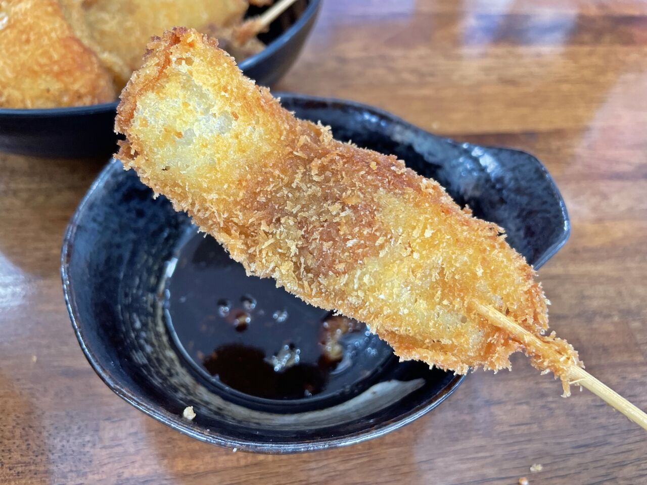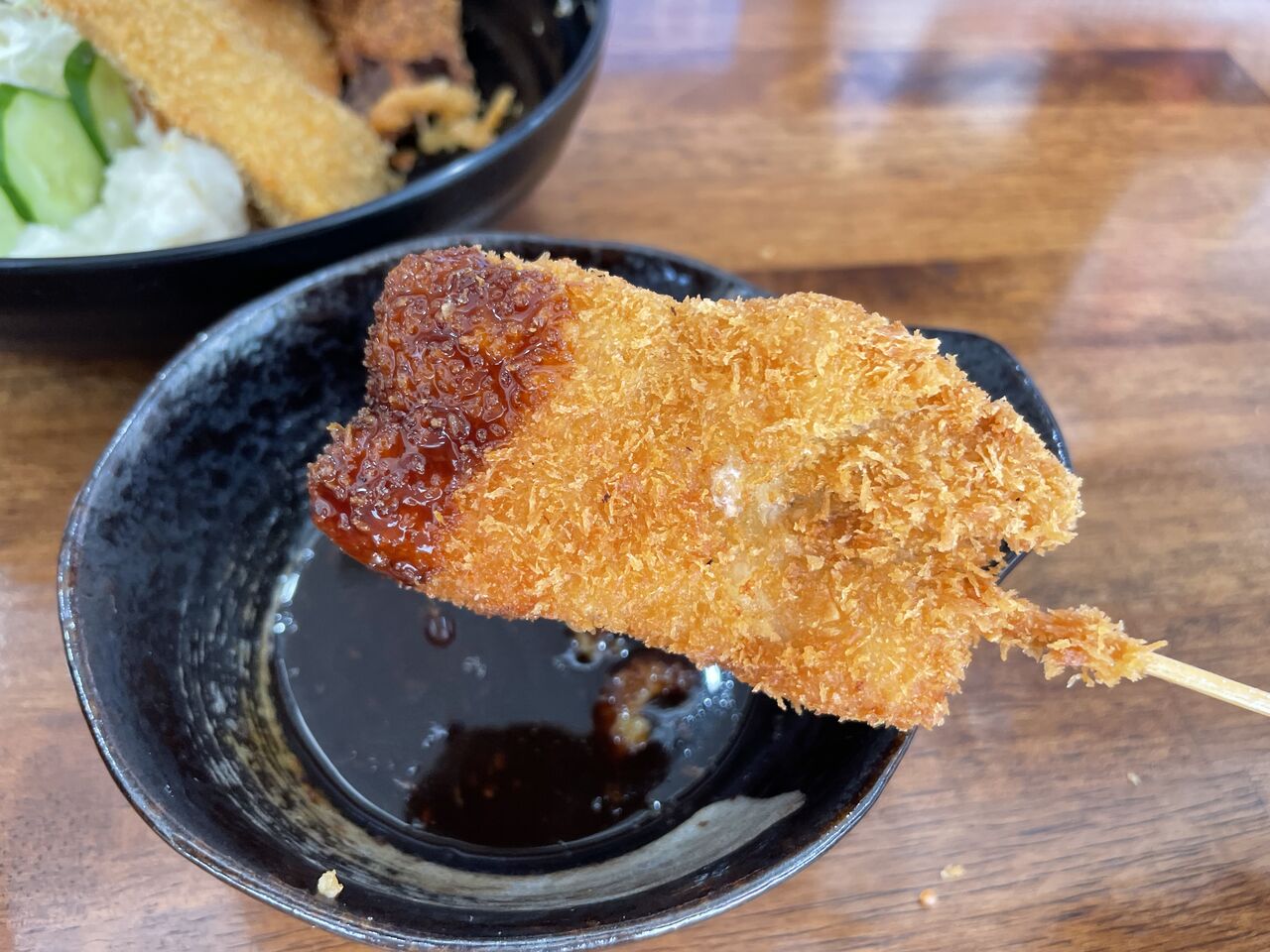 ちくわの串カツって珍しいなと思って食べましたが、これがびっくりするくらい美味しい(^^♪