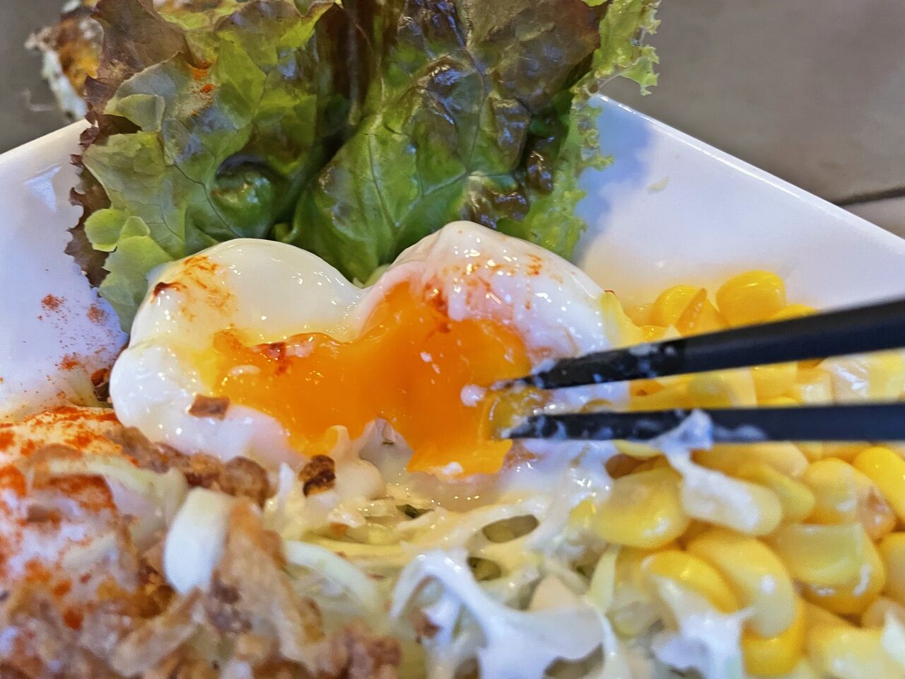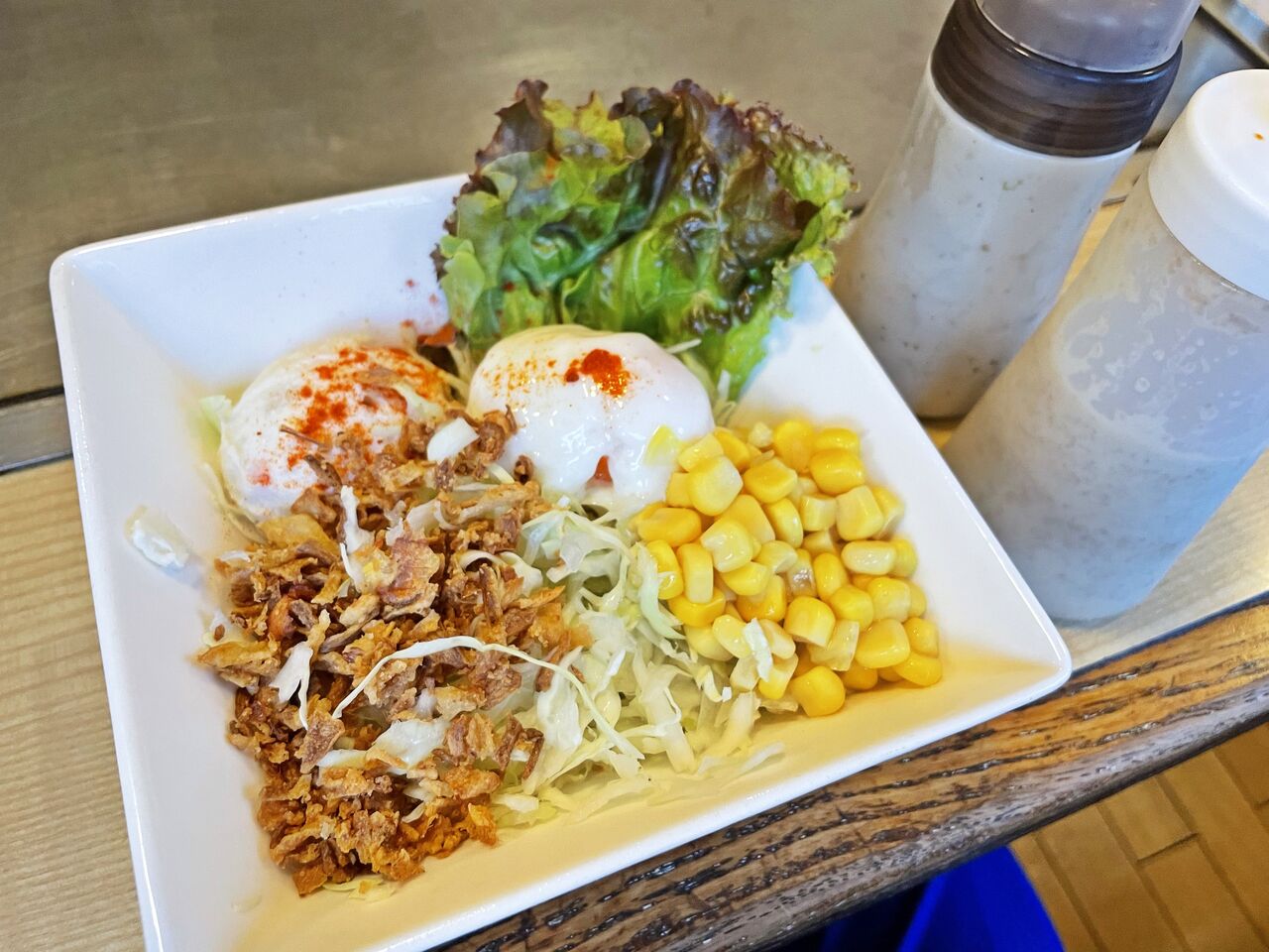 美味しいチーズ豚玉とボリュームあるサラダのセットにお腹いっぱい大満足でした♪
