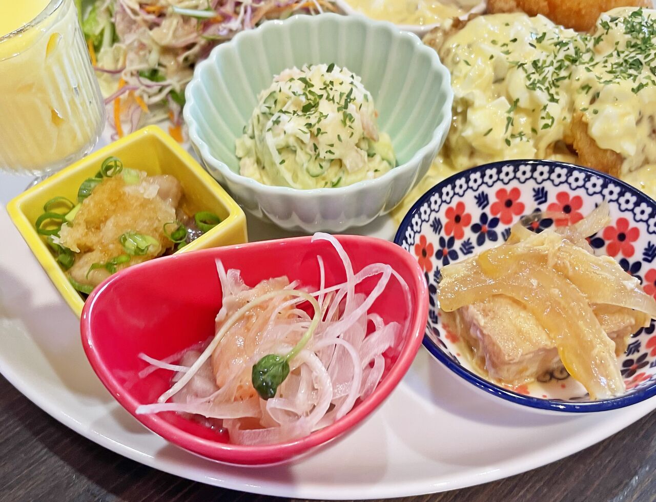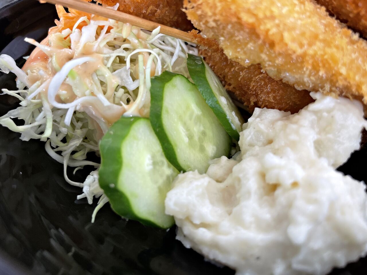 串カツに隠れて見えませんが、ポテサラ、野菜サラダも盛られてます(^^)