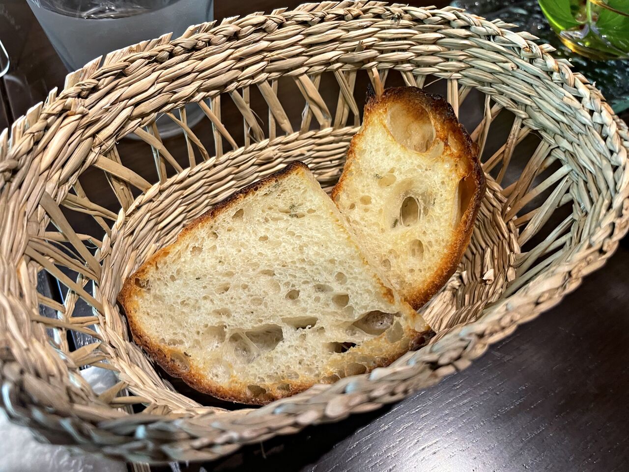 ハーブの入ったパン。カリっと焼かれていて美味しかったです(^^♪