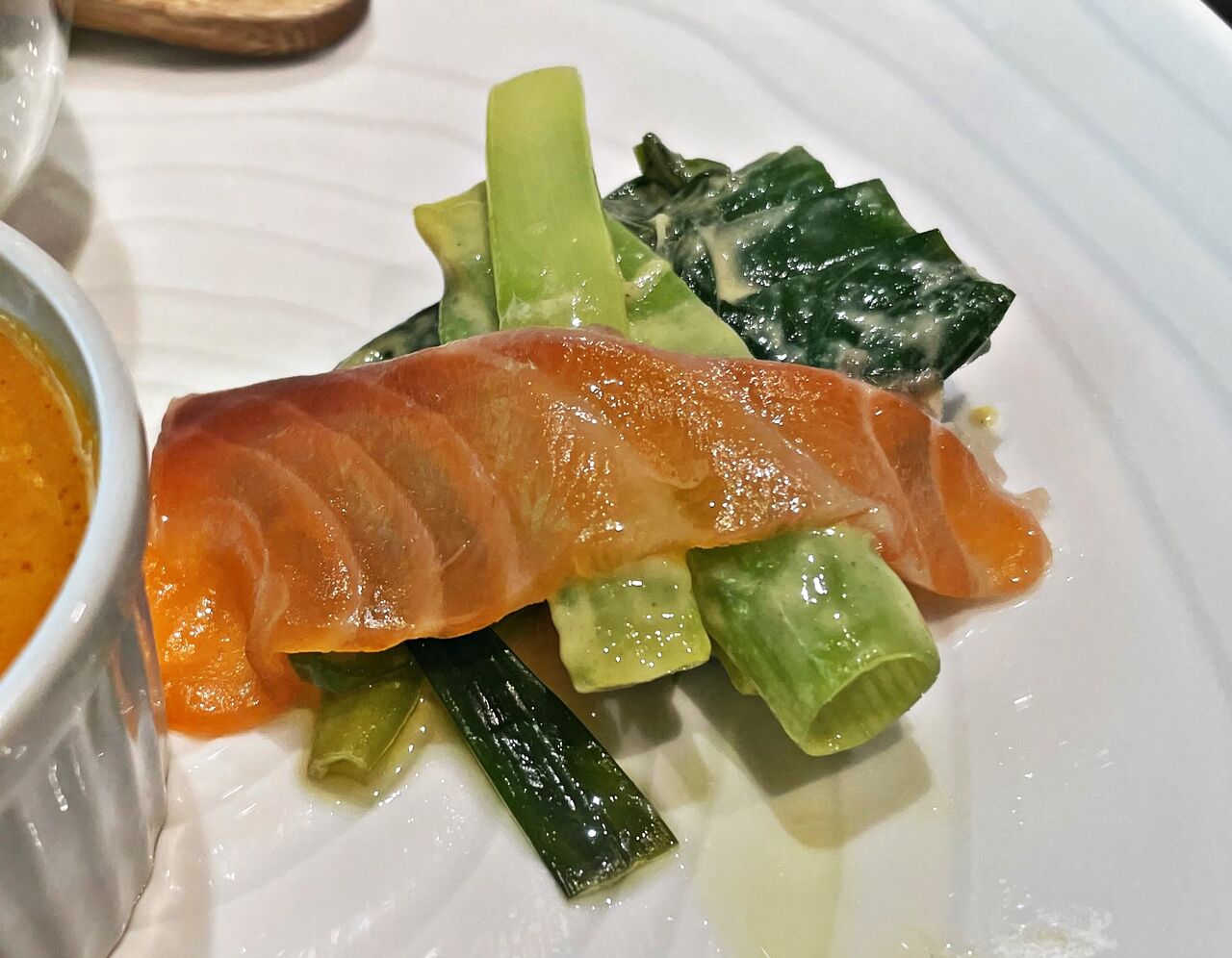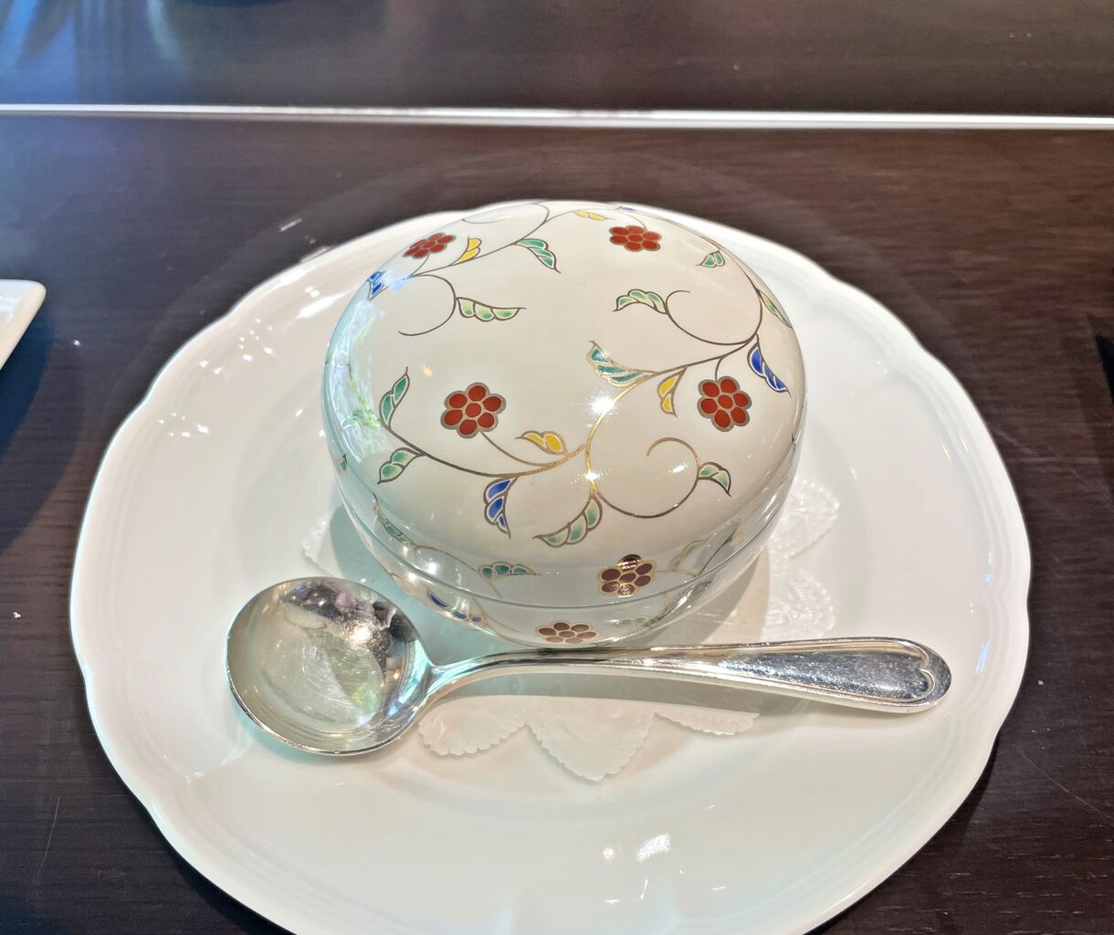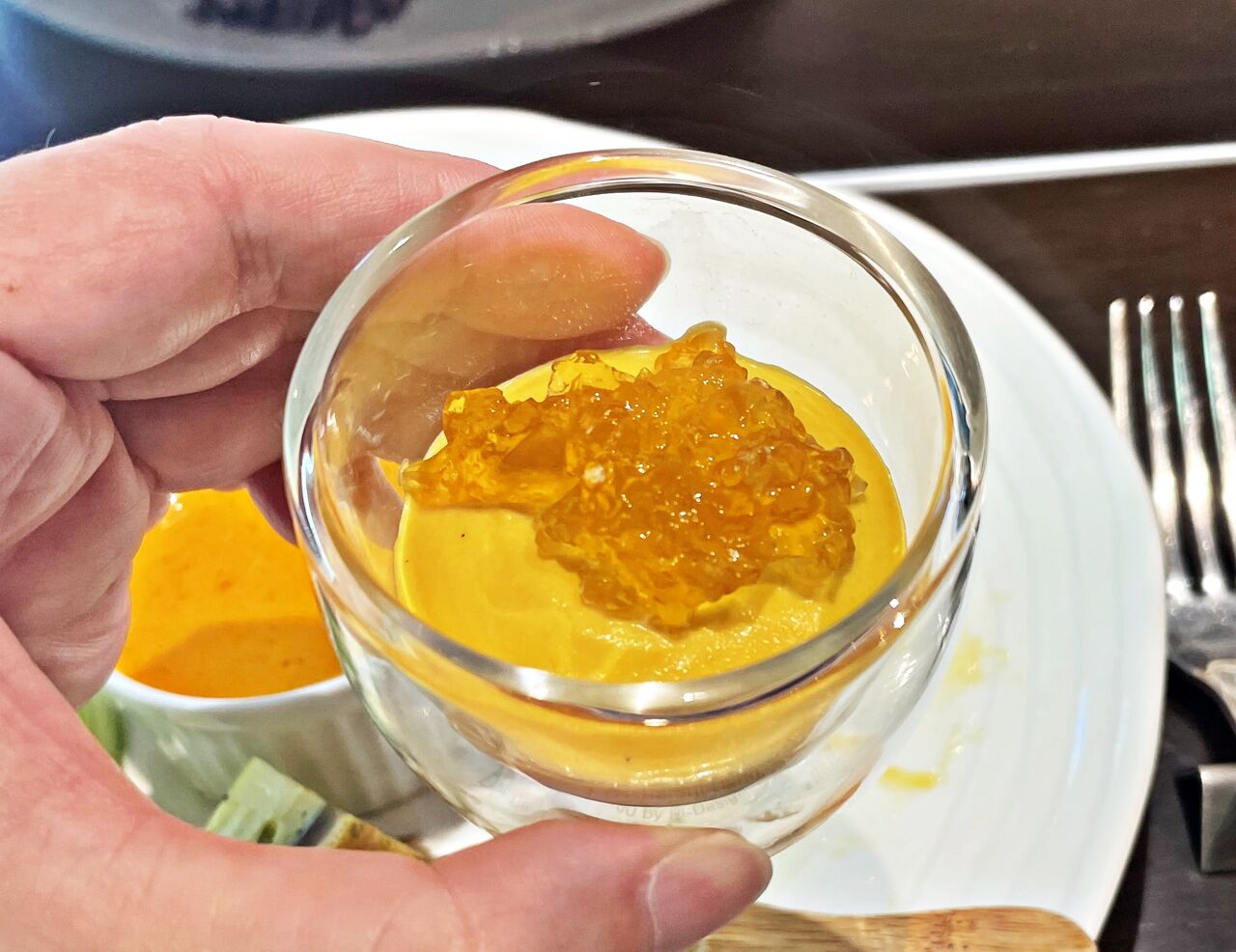 デザートのような甘いムースにコンソメのジュレが美味しい(^^♪