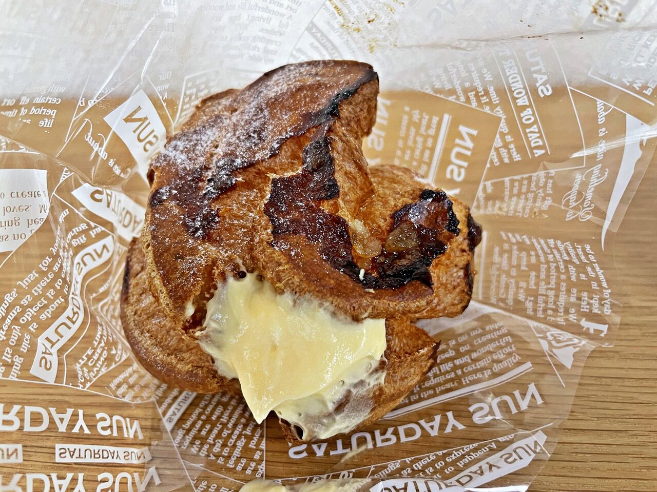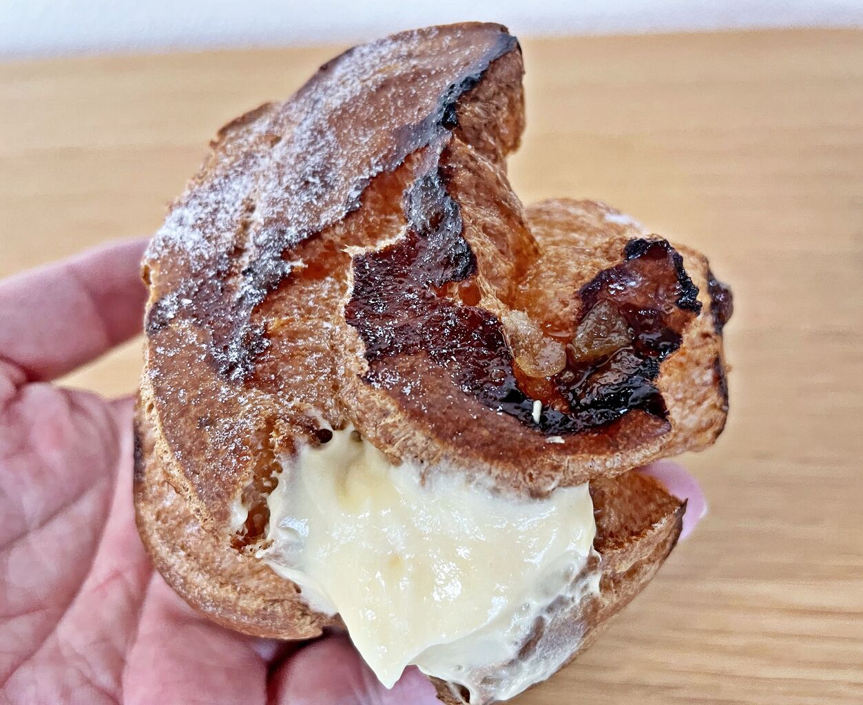 ごつごつとしたシュー生地からクリームが溢れています(^^)