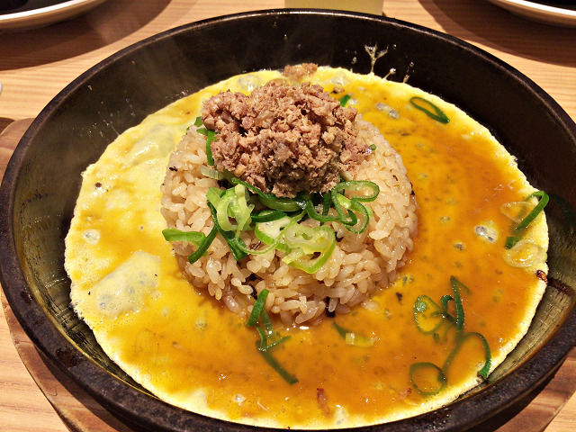 鉄板に卵を入れてもらったら全体を混ぜ混ぜします♪