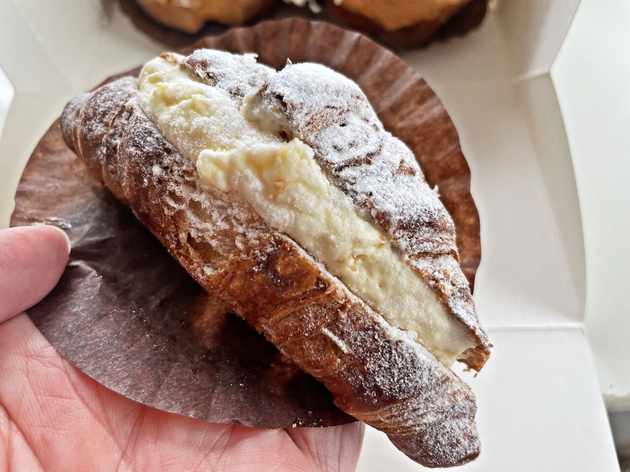 甘いクロワッサン生地にカスタードクリームが挟んであって