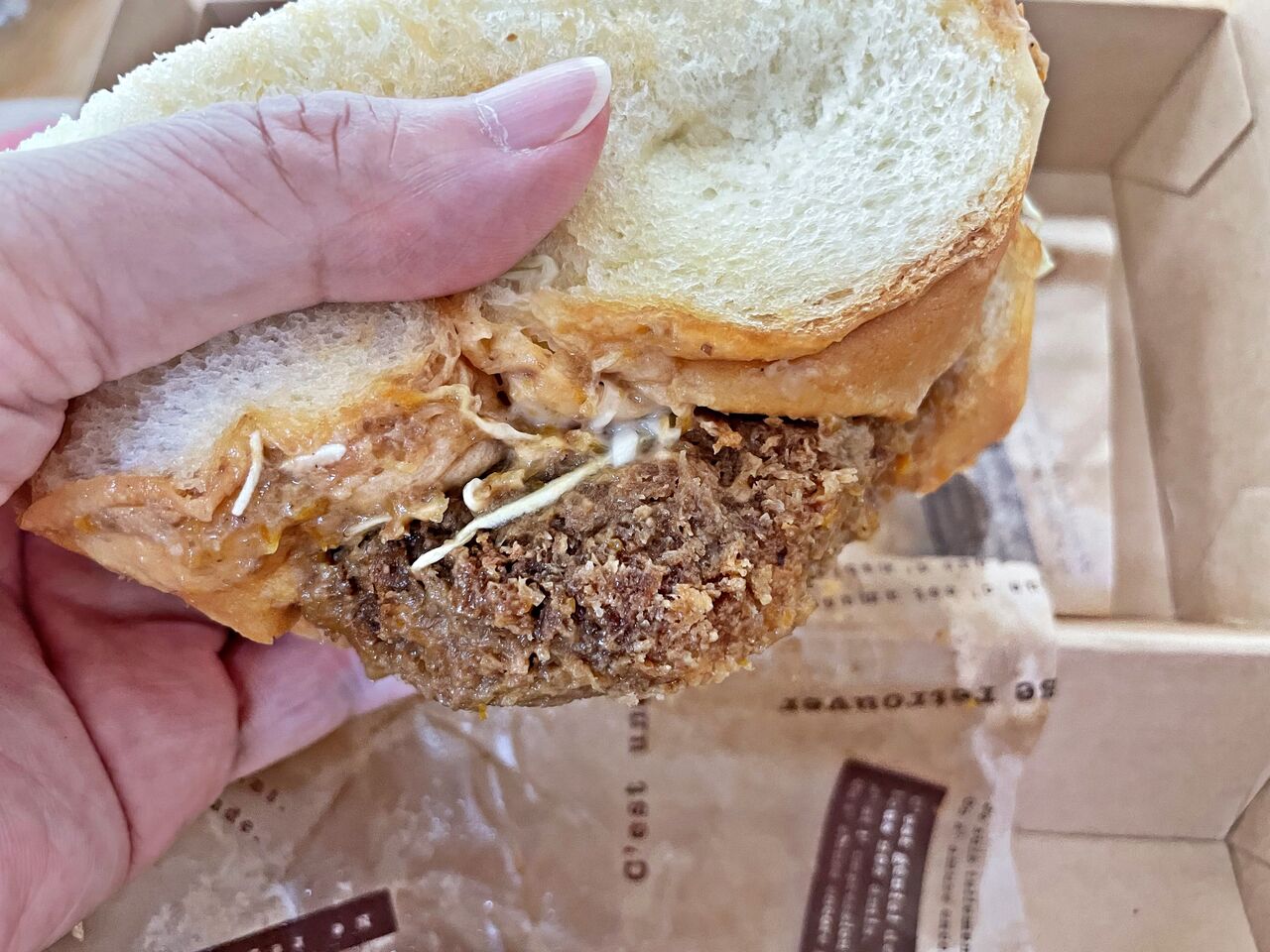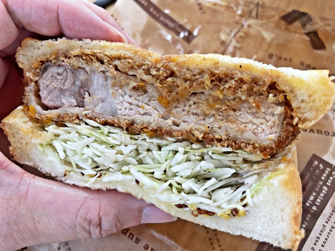 分厚く大きなトンカツなのでパンからはみ出てます(^^)