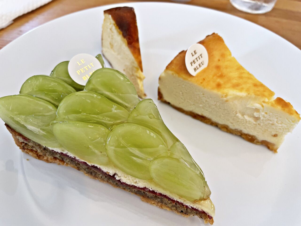 シャインマスカットのタルト(1058円)ニューヨークチーズケーキ(496円)♪ケーキを2個選べるダブルケーキセット(1320円)にしました(^^)
