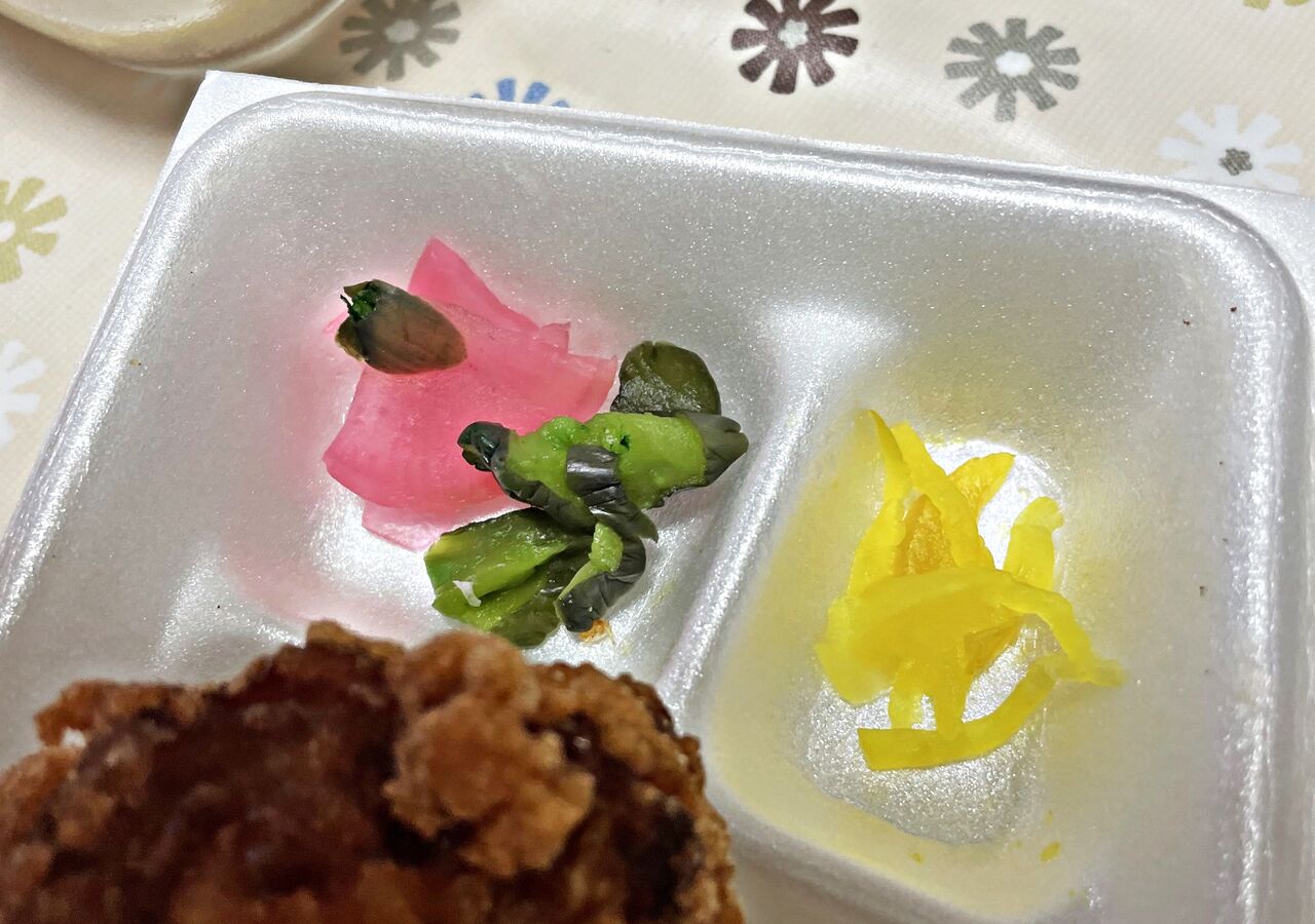 唐揚げが大きくて見えませんが下には漬物♪