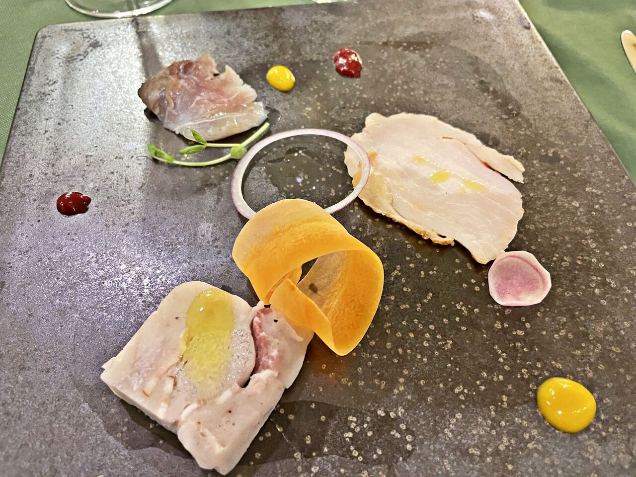 前菜3種盛り♪ローストチキン♪ カルパッチョ♪ 里芋のテリーヌ♪