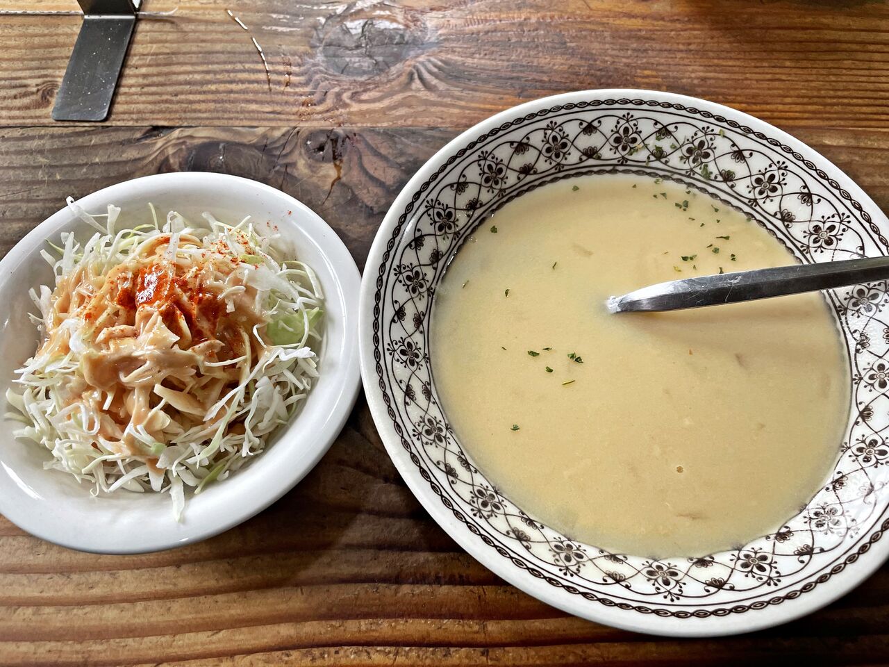 サラダ♪ スープ♪熱々で出て来るスープ美味しかったです(^^♪