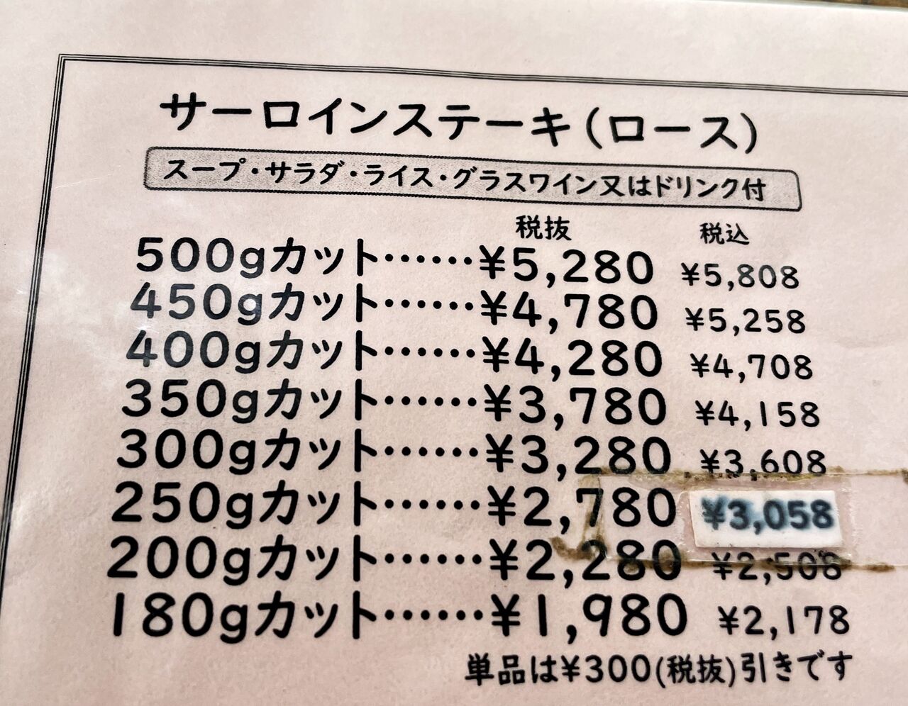 サーロインステーキにはグラスワインかドリンクが付くので