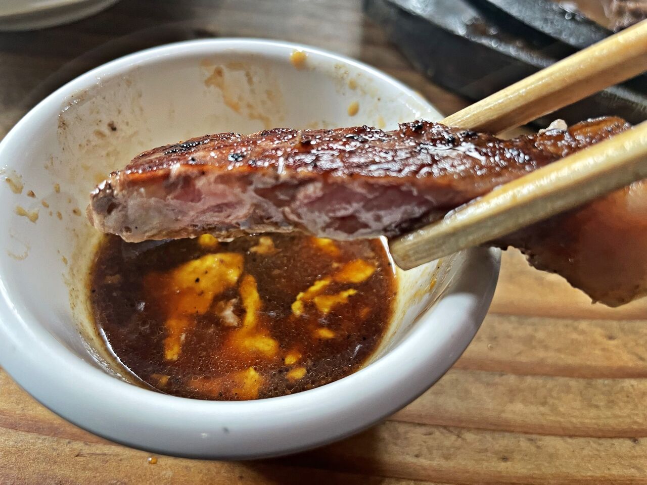 醤油ベースのマスタードが入ったソースでいただきます♪