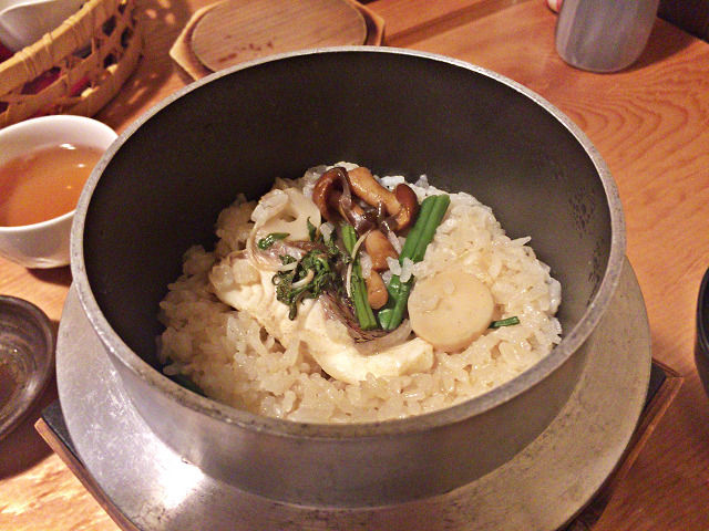 そして籠盛りを食べ終えるとちょうど釜飯が出来上がります。