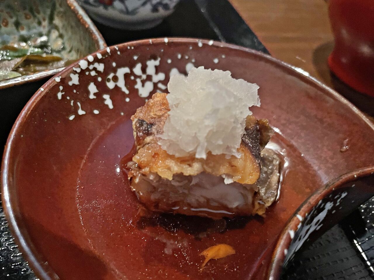 茶碗蒸し♪椎茸かなと思ったら前菜にもあった黒ゴマ豆腐の入った茶碗蒸しでした(^^)