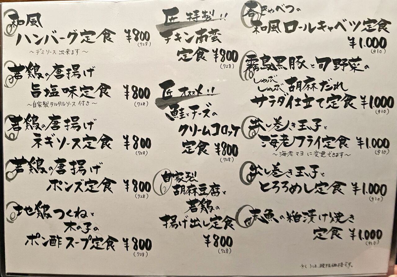 どれもお手ごろ価格の定食です♪