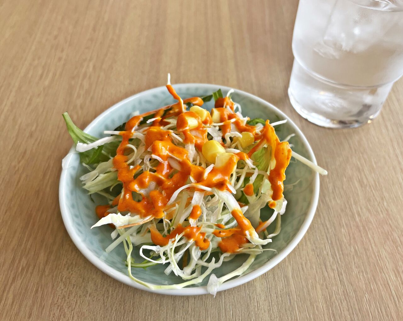 インド料理のお店では定番のドレッシングの色ですね(^^)