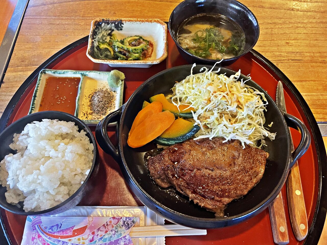 今回も注文したのは ステーキ定食♪ です(^^)