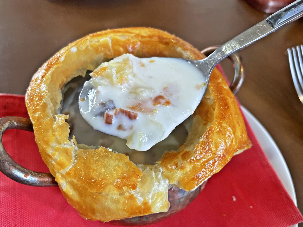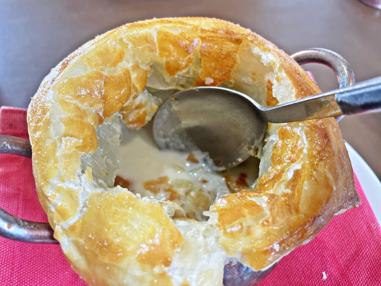 パイを崩してキノコスープと食べると美味しい~(^^♪