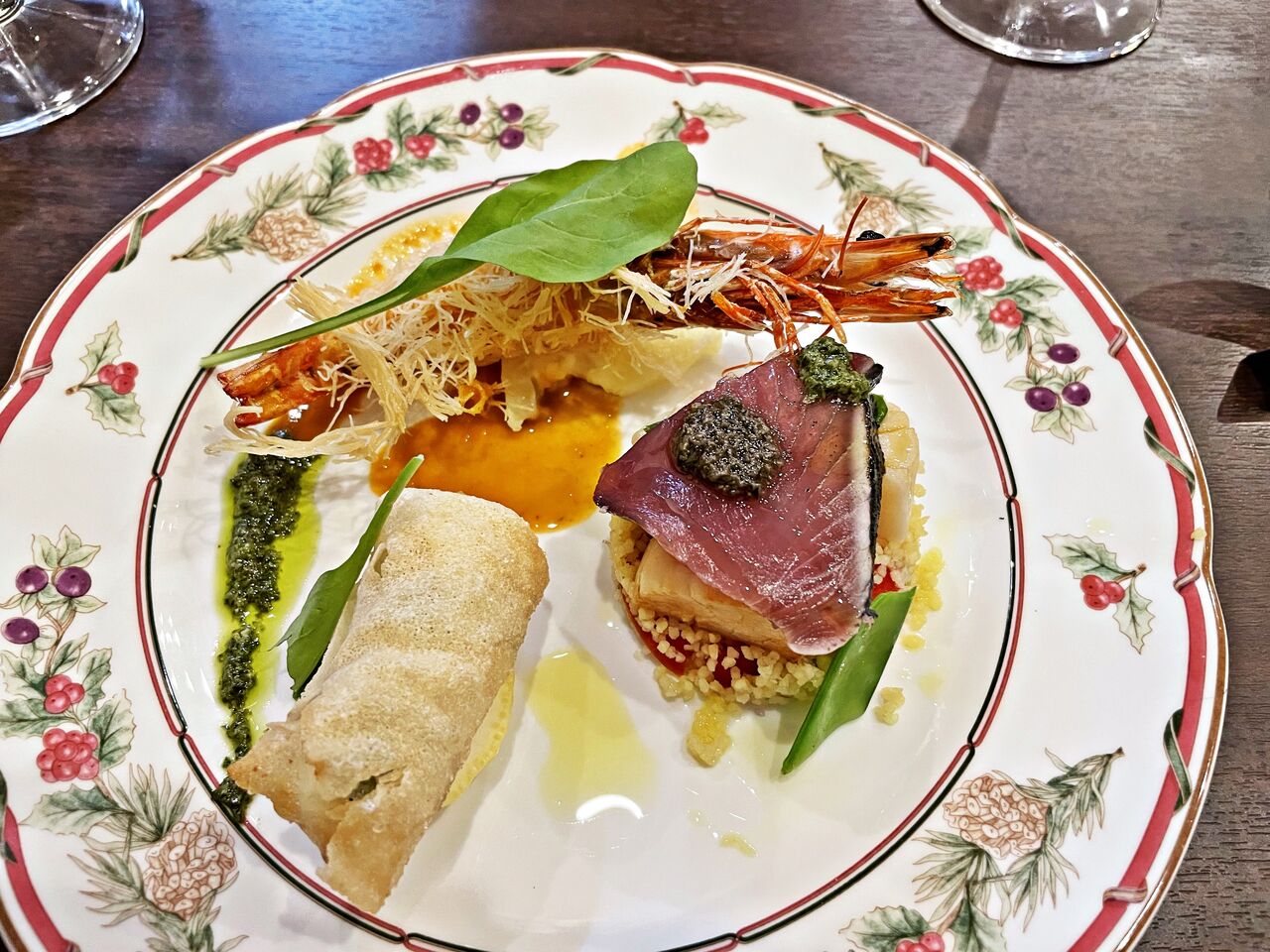 パートブリック♪ カツオ、ホタテ、クスクスのサラダ♪ 車海老のアメリケーヌソース