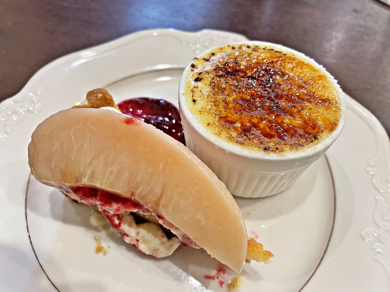 桃のタルトと2層のブリュレ♪