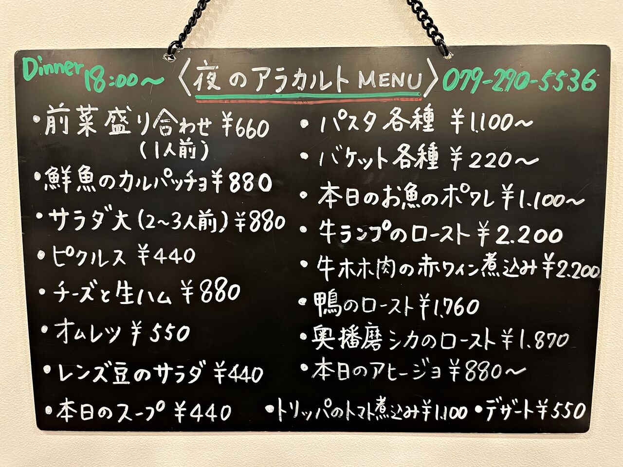 ディナーのアラカルトメニュー♪