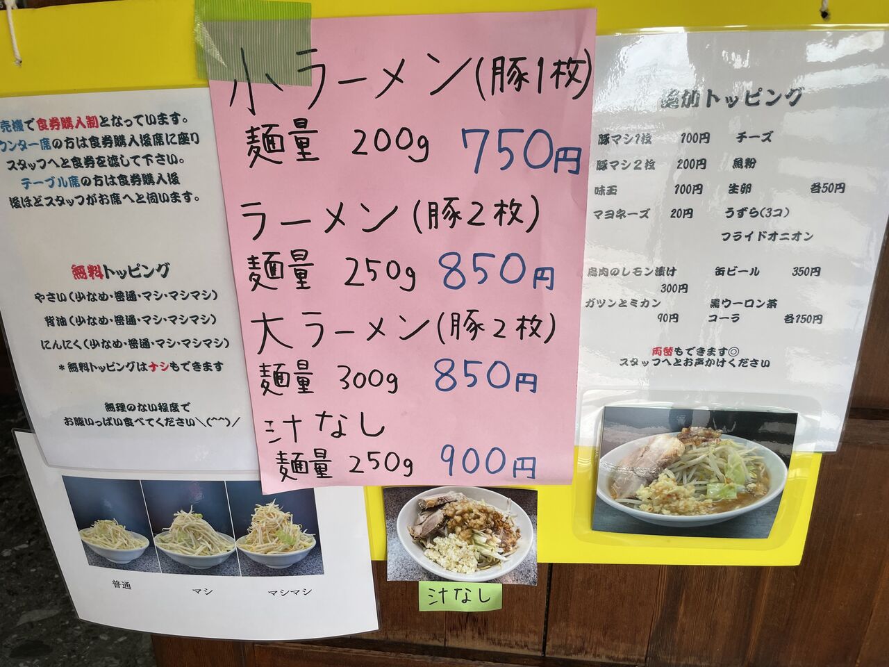 メニューのラーメンはこんな感じ