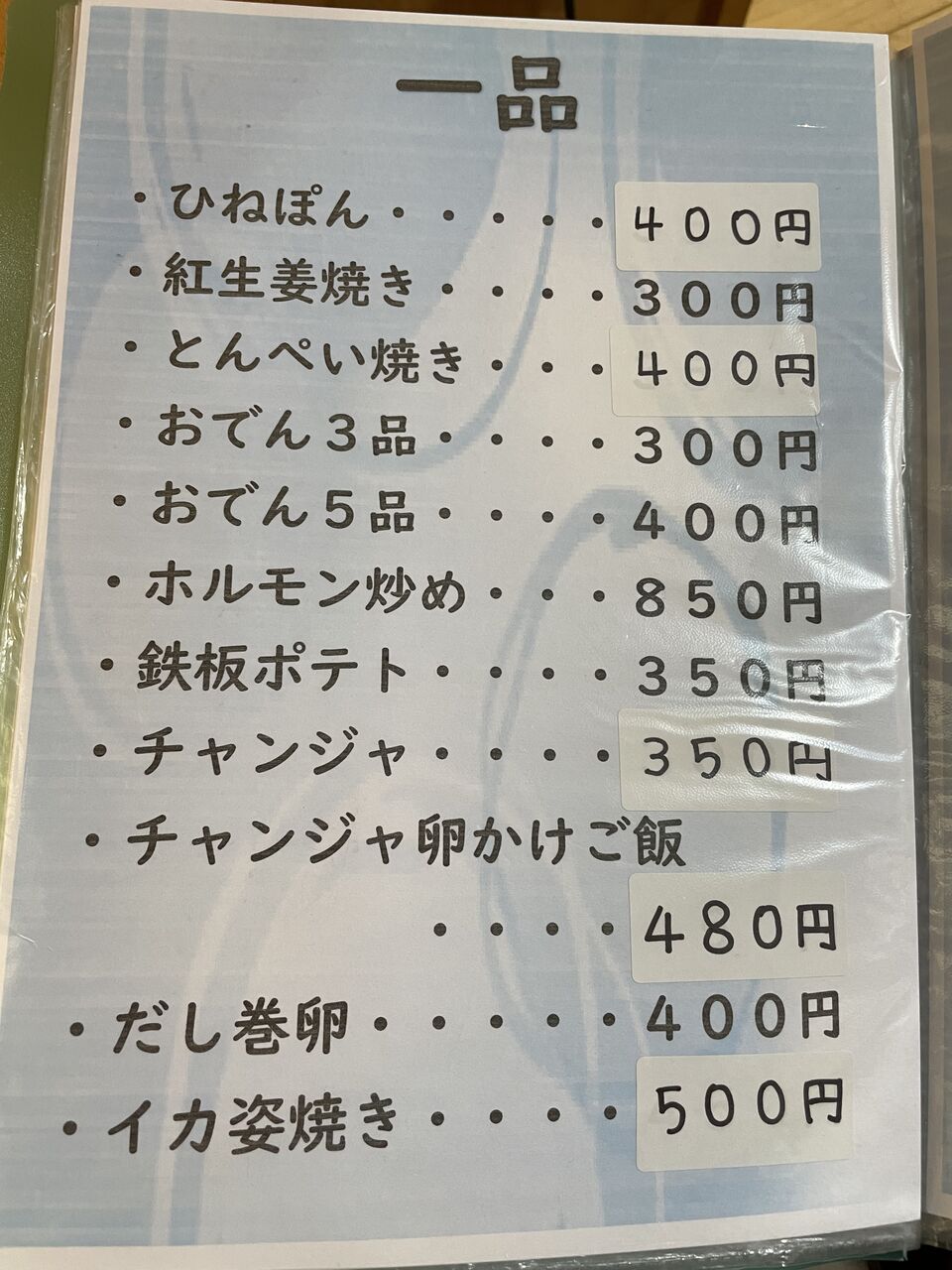 生ビール(450円)♪一品メニューなどもあったので