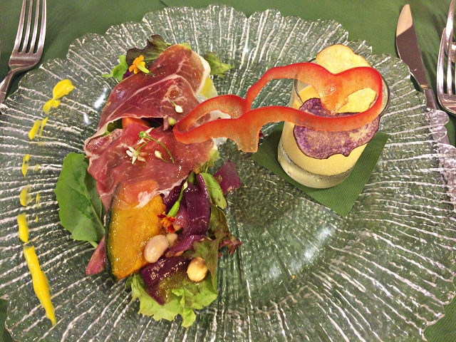 生ハムのサラダもワインとともに美味しくいただきました(^^♪