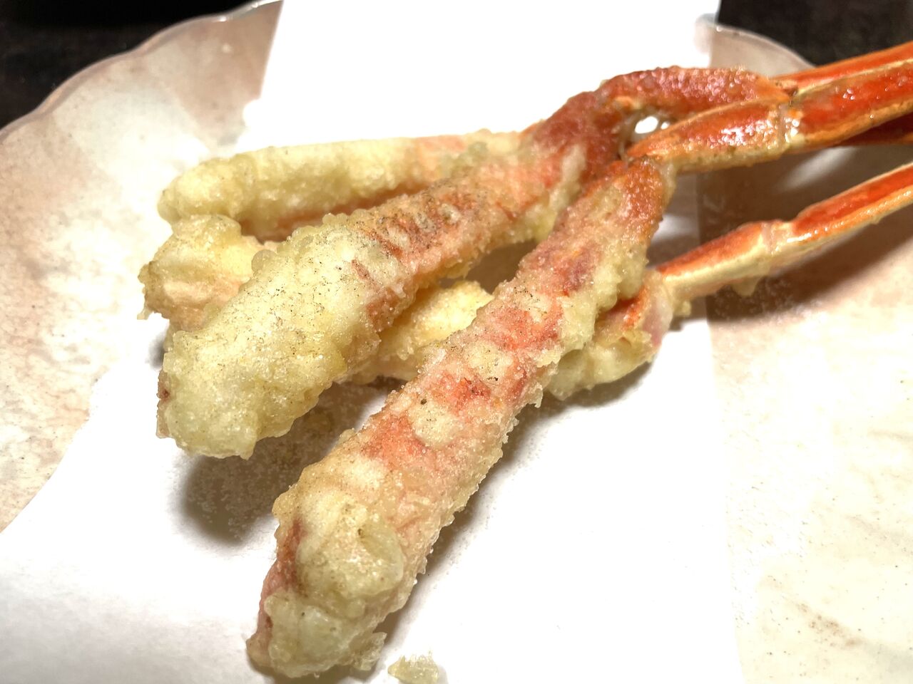 カニ天ぷら♪揚げたてサクサクで美味しい~(^^♪
