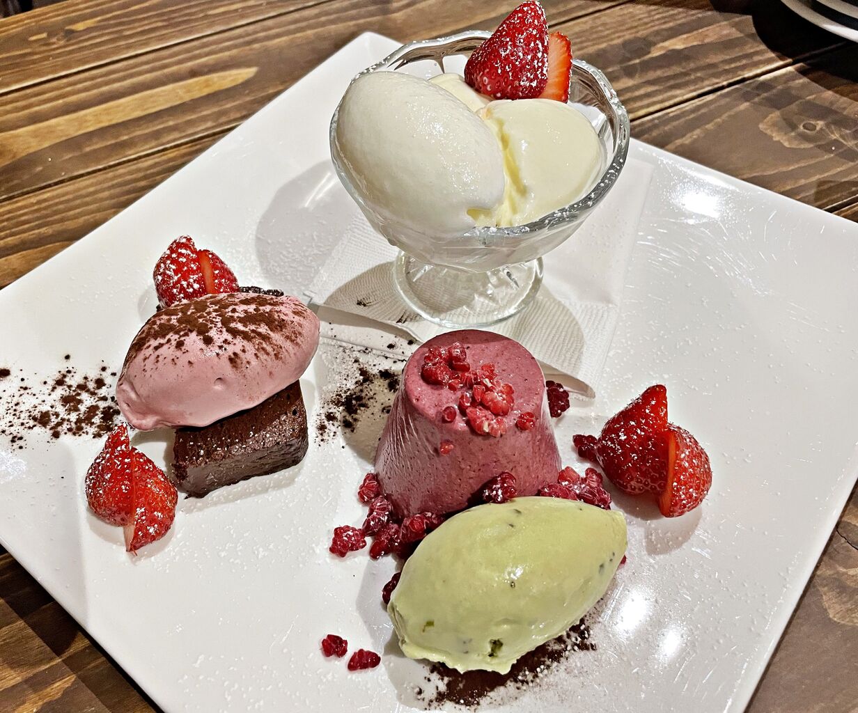 ブラックベリーのムース♪ ピスタチオのジェラート♪