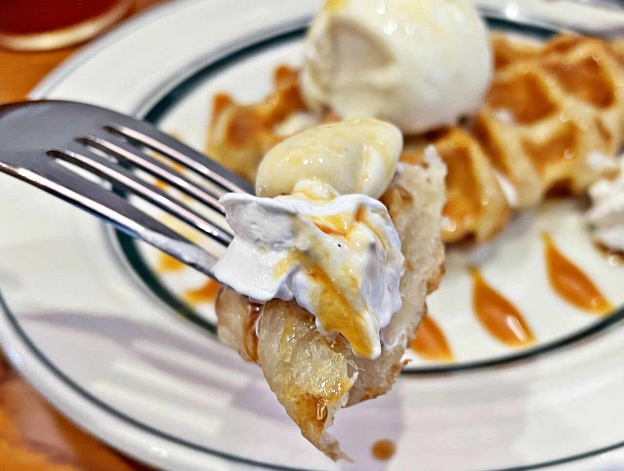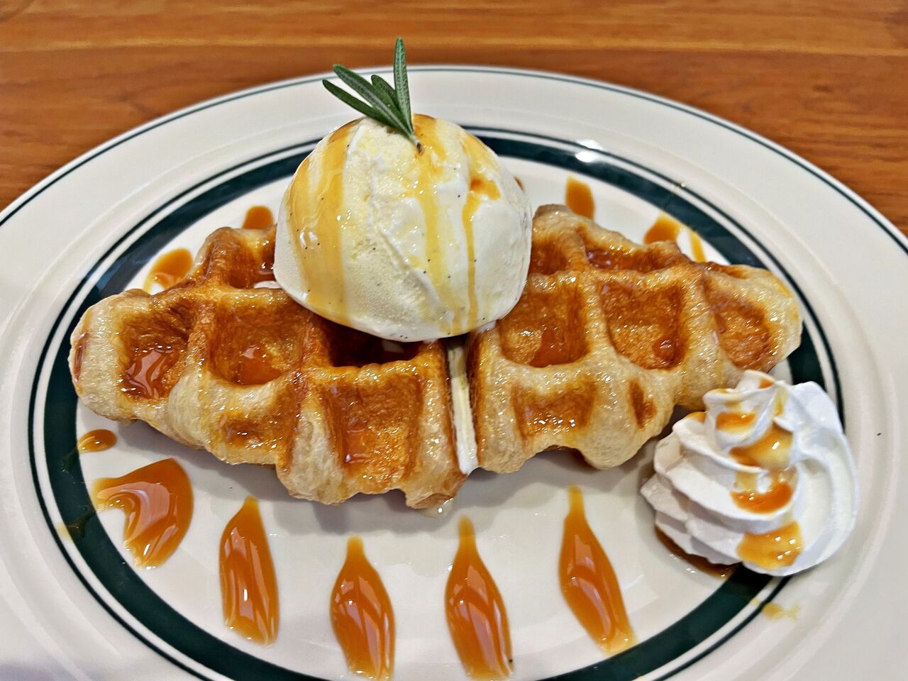 クロッフル(キャラメルソース)♪クロッフルはクロワッサン生地をワッフルメーカーで焼いたものです♪