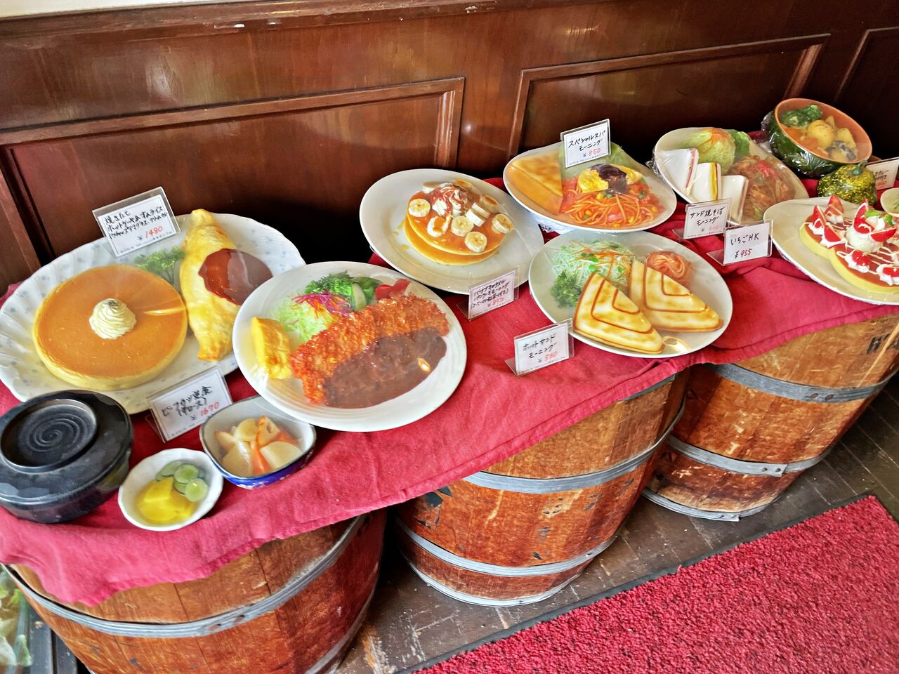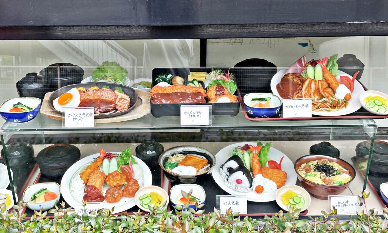 入口の前には美味しそうな定食のディスプレイが♪