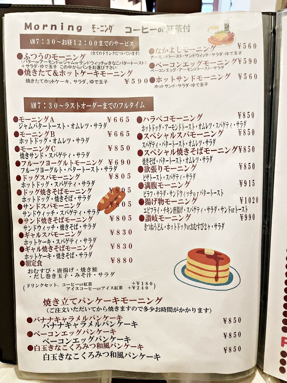 モーニングという名のフルタイムで注文できるメニューがいっぱいあります(^^)