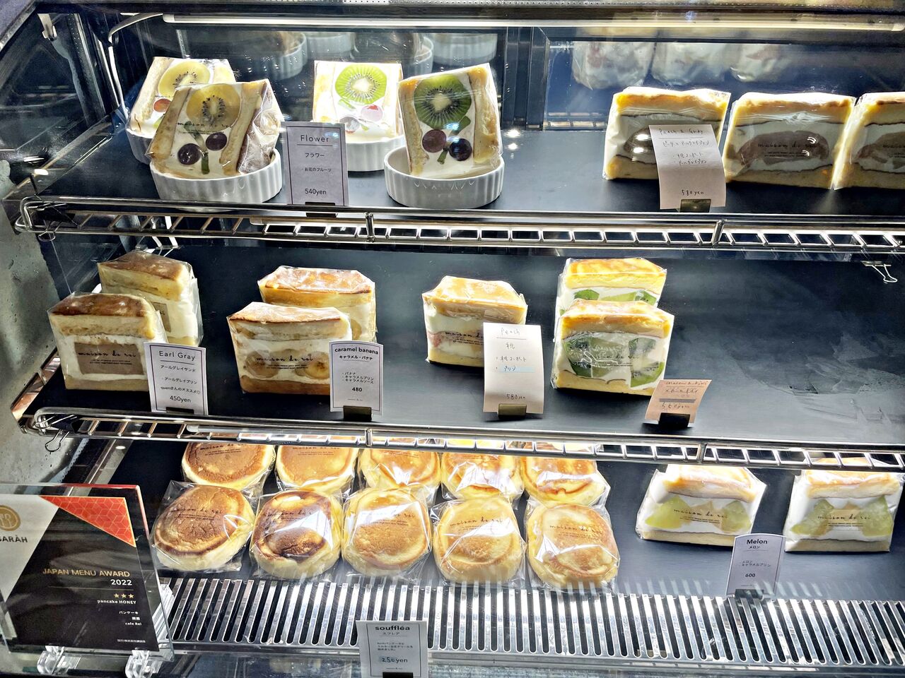 ショーケースにはパンケーキのフルーツサンドなど