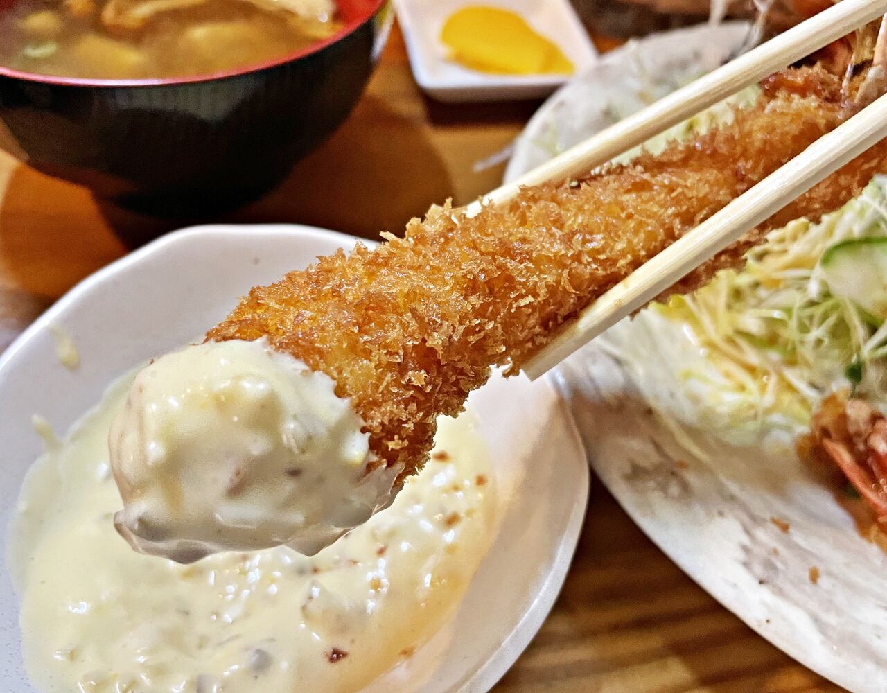 タルタルソースをたっぷりつけていただきます♪