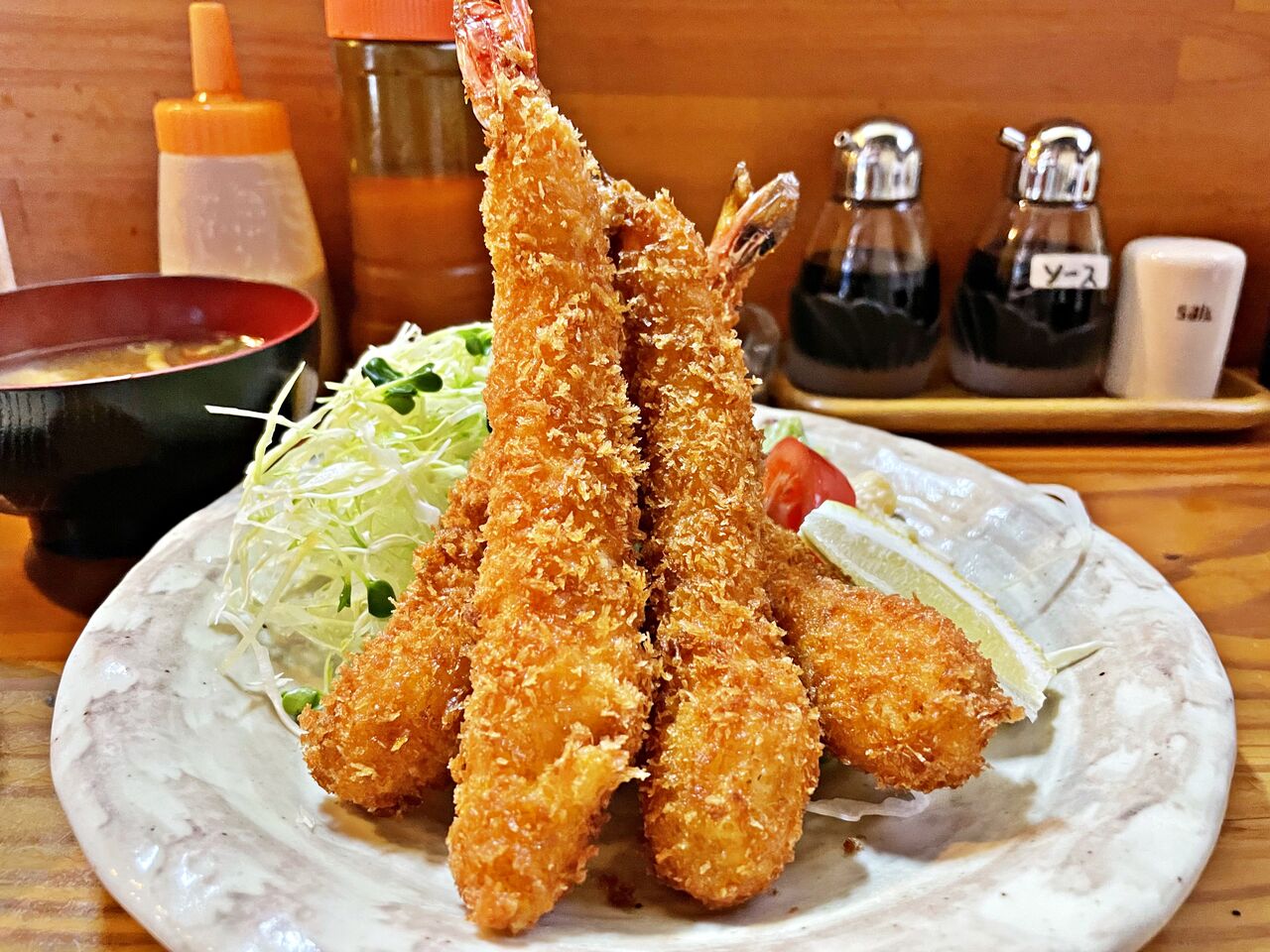 ボリューム満点のエビフライ定食にお腹いっぱい大満足でした♪