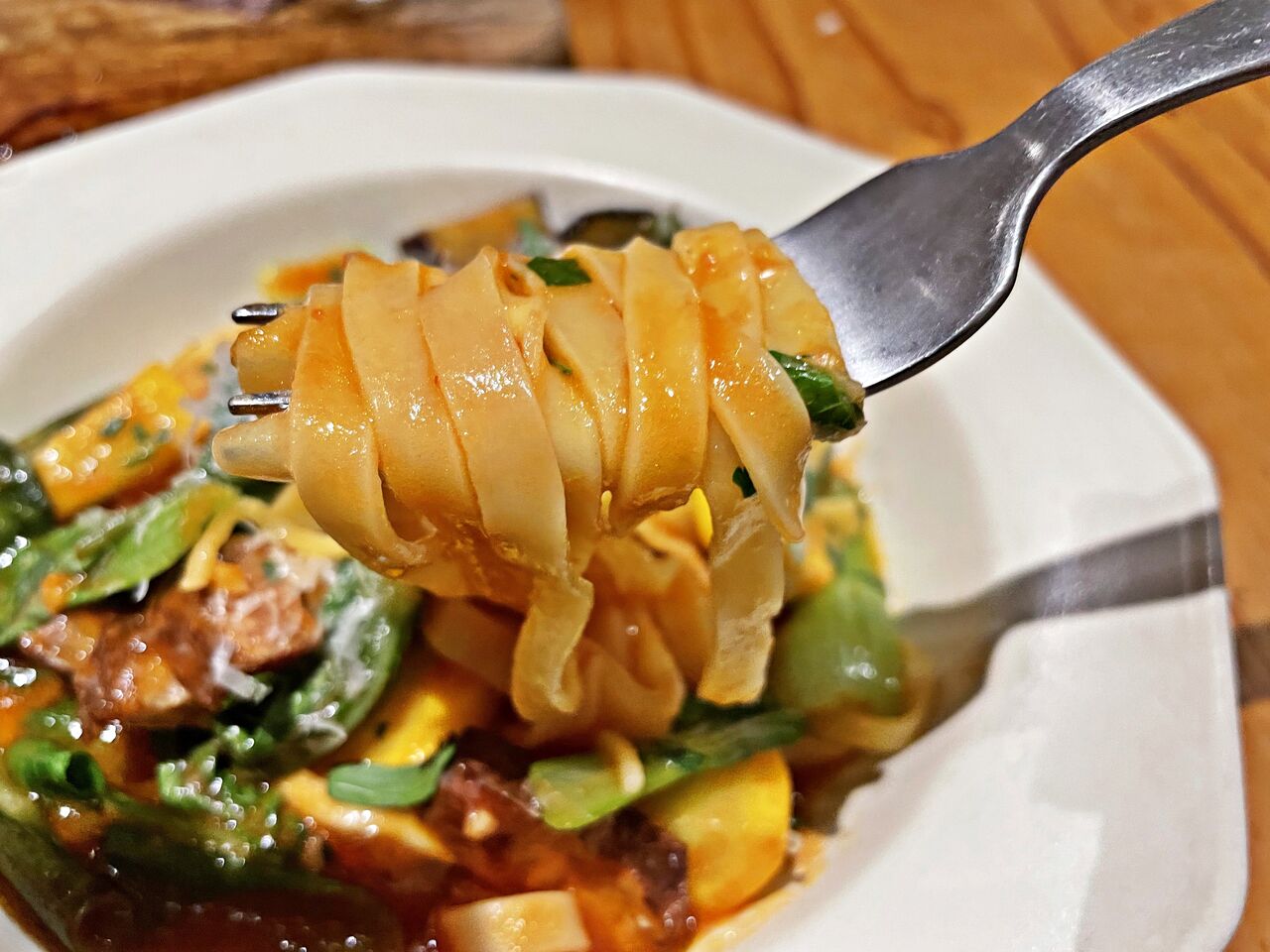 無農薬野菜たっぷりに生パスタ美味しい(^^♪