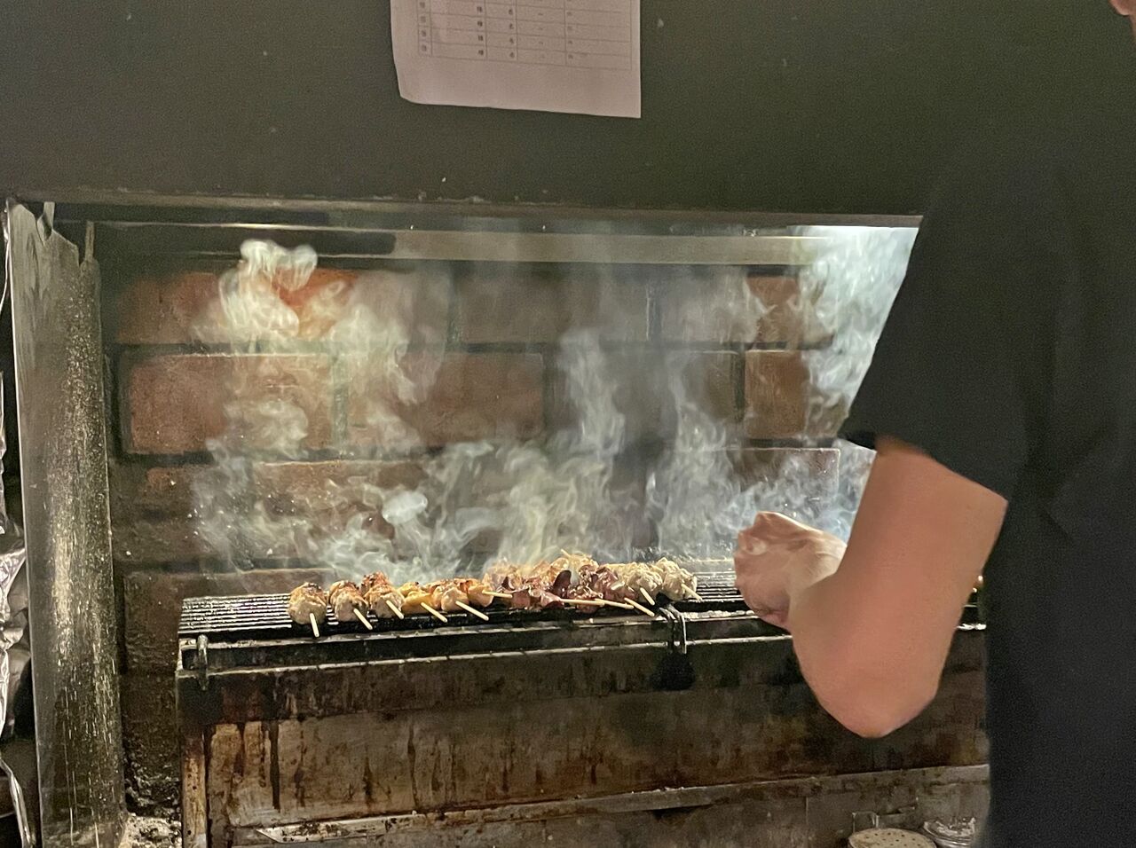 カウンター席に座ったので目の前で炭火で焼鳥が焼かれてるのが見えます♪
