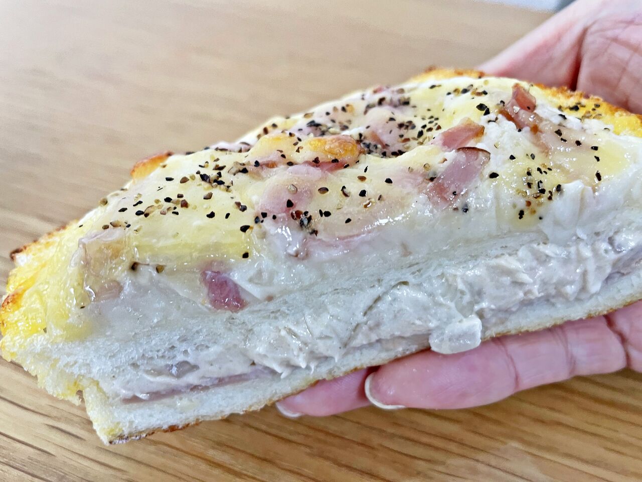 ツナサラダとハムもサンドされていてグラタン風に仕上げられたクロックムッシュ♪