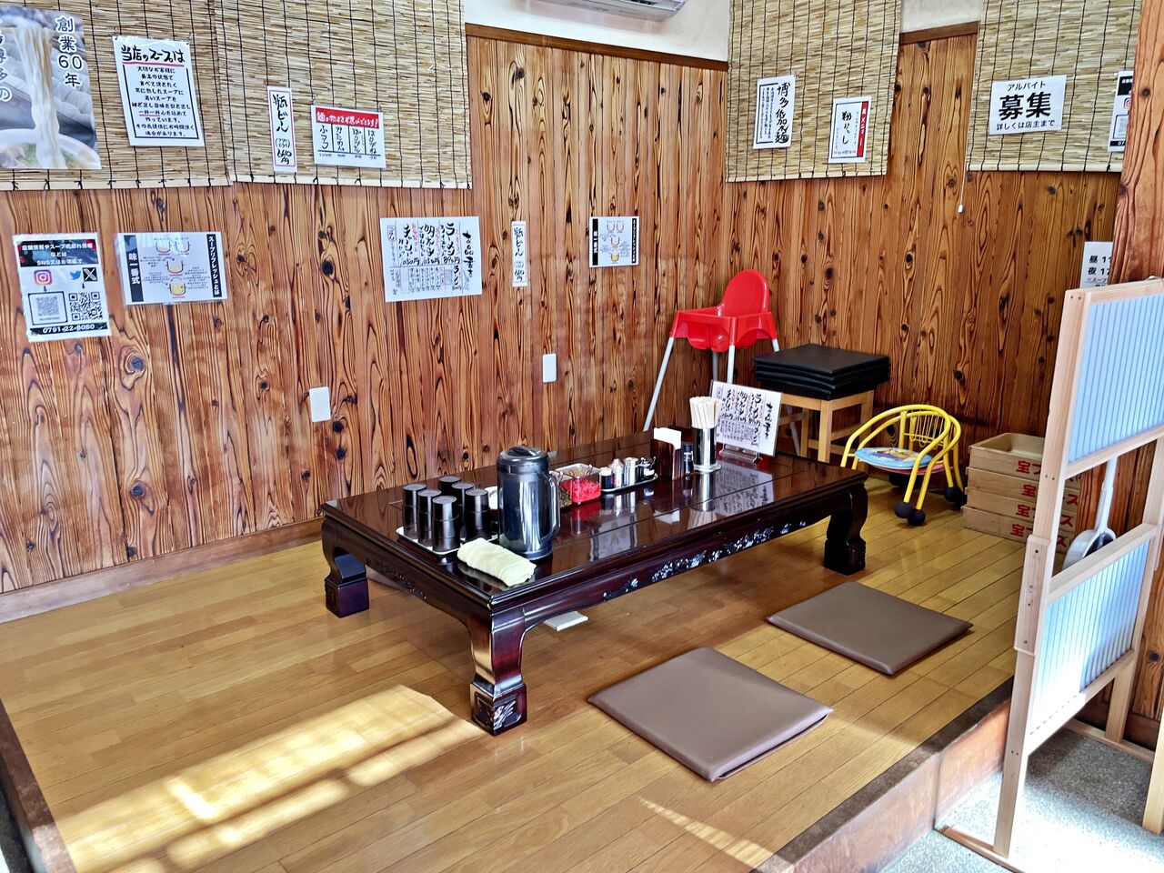 座敷テーブル席1つ、カウンター席5つの小さなお店です。