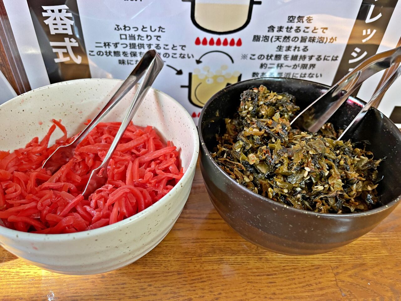 カウンターには紅ショウガと高菜が置いてあります♪