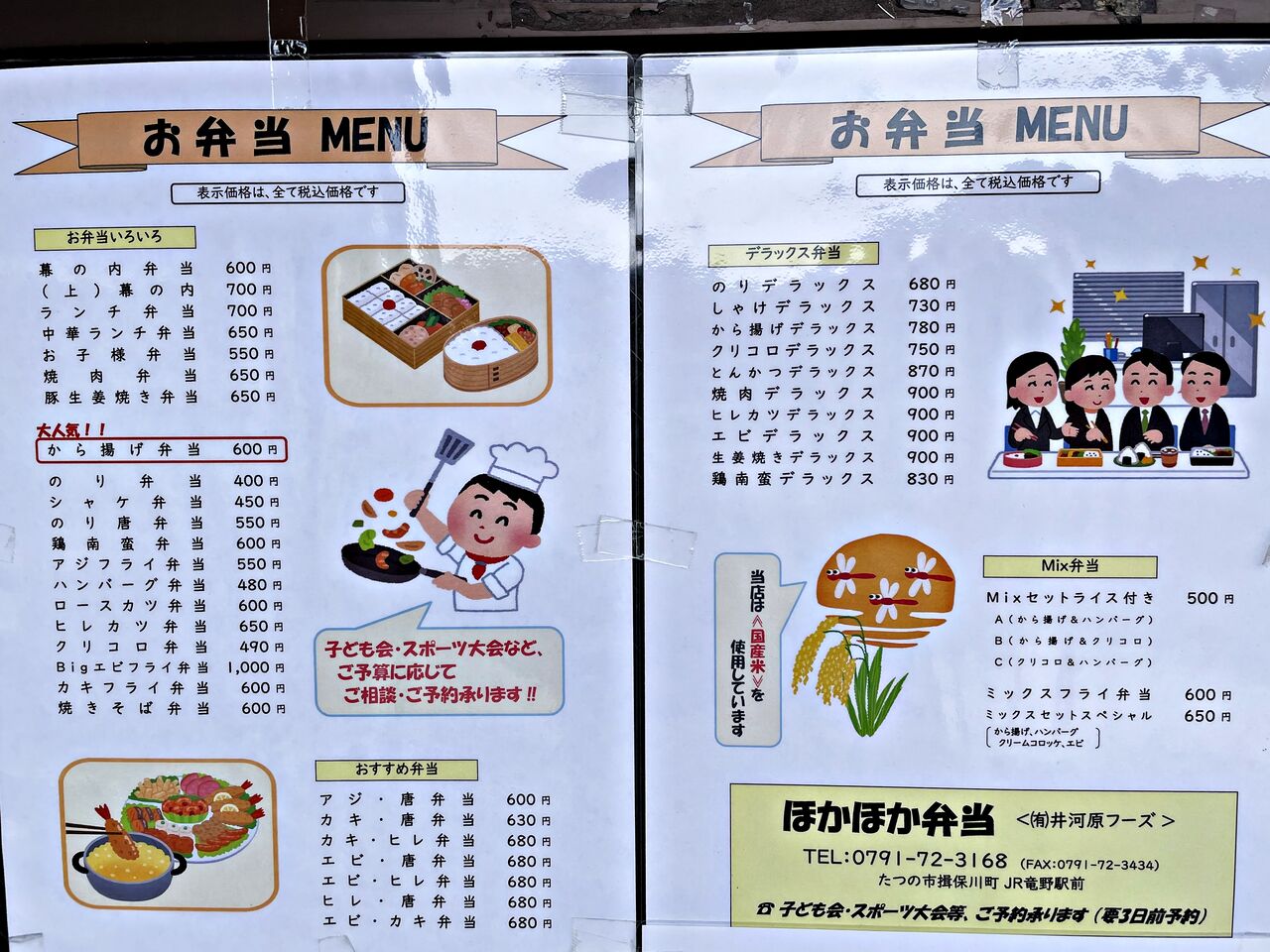 2023年12月30日 たつの から揚げ♪《井河原フーズ》 カテゴリ:肉・フライたつの・太子 先日、お弁当屋さんへ行きました。お店は たつの市の 『 井河原フーズ 』です。JR竜野駅前にあるほかほか弁当のお店です♪メニューはこんな感じカウンターには単品のおかずも並んでました♪このお店に来たら注文するのは一択です(^^)から揚げ♪蓋が閉まらない大きさの唐揚げです(^^)ボリューム満点の唐揚げ♪私はいつもご飯なしのおかずのみで購入します♪外カリカリタイプの唐揚げとっても美味しいです(^^♪美味しい唐揚げに大満足でした♪また美味しい唐揚げが食べたくなったら再訪したいと思います(^.^)井河原フーズたつの市揖保川町山津屋141-110791-72-31688:30 ~定休日 水曜日 ほかほか弁当 揖保川店 関連ランキング:弁当 | 竜野駅 タグ :#たつの#弁当#から揚げ#のむのむ#グルメブログ 「肉・フライ」カテゴリの最新記事 姫路 かす汁うどん♪《まねきダイニング》《今年もありがとうございました♪》