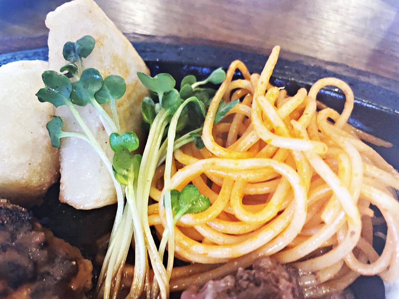 付け合わせのスパゲティとポテトも美味しくいただきました(^^♪