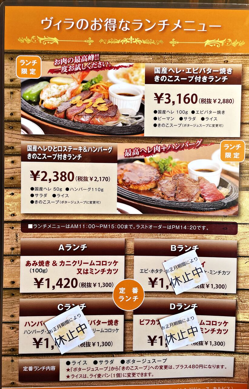 この日は年明け早々だったのでB,C,Dランチは休止中でした。