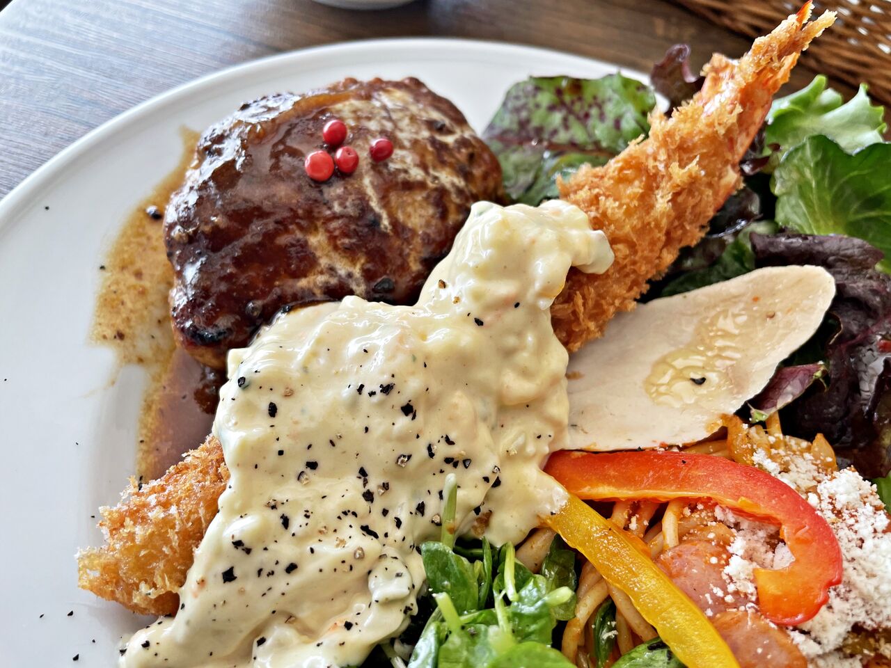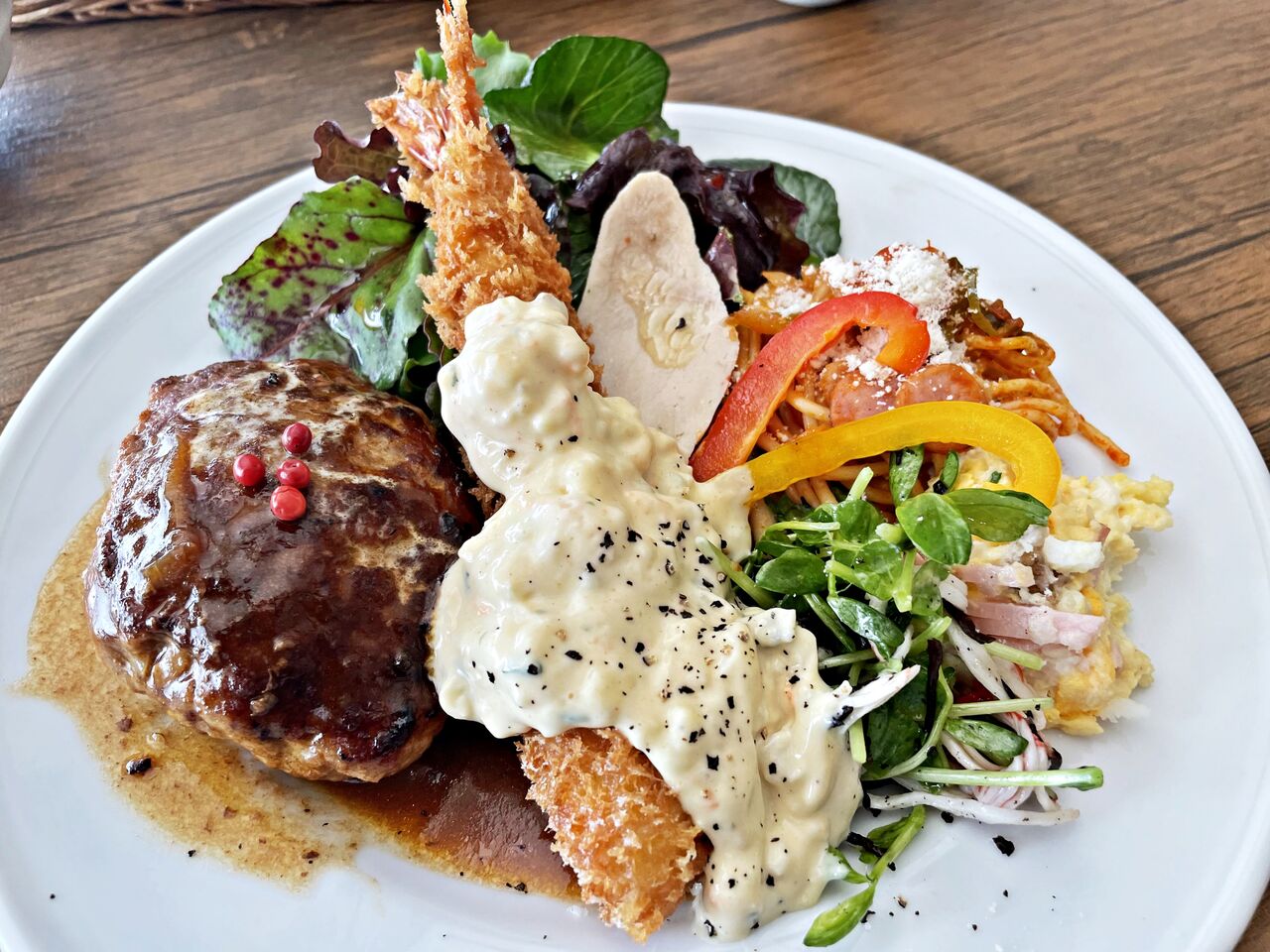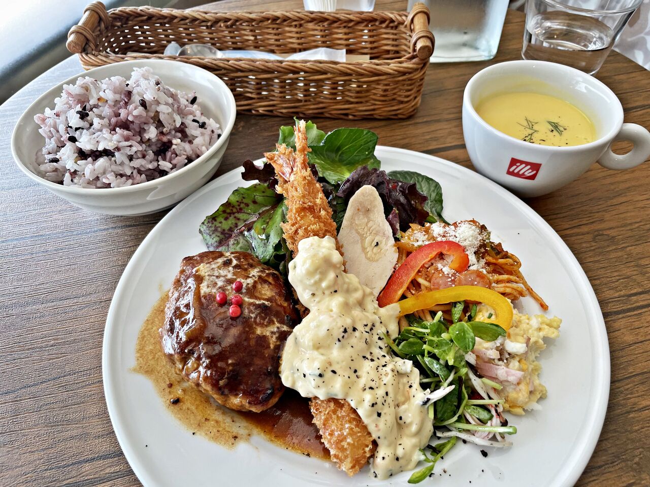 美味しいハンバーグと大海老フライのランチにお腹いっぱい大満足でした♪