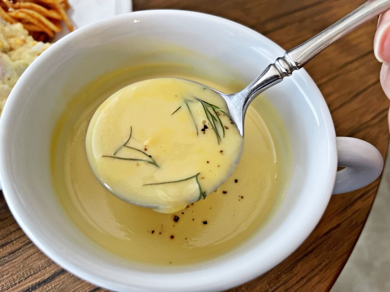 熱々で提供されるスープ美味しいです(^^♪