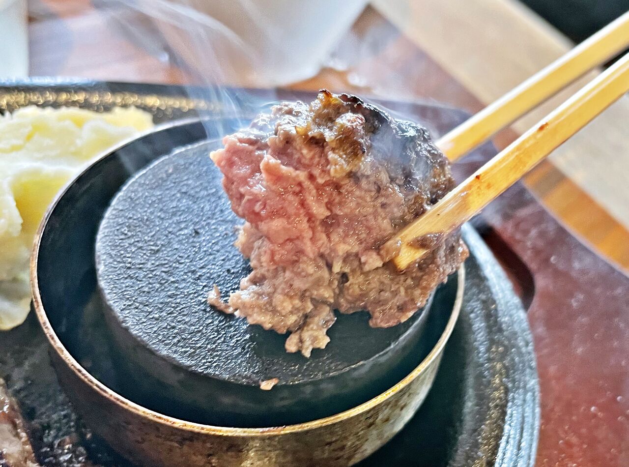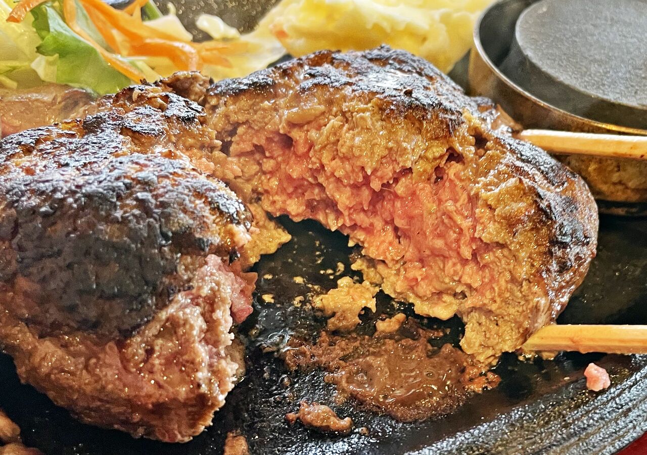 当日の朝に国産牛100%自家製ミンチ肉を使用して作られたハンバーグは