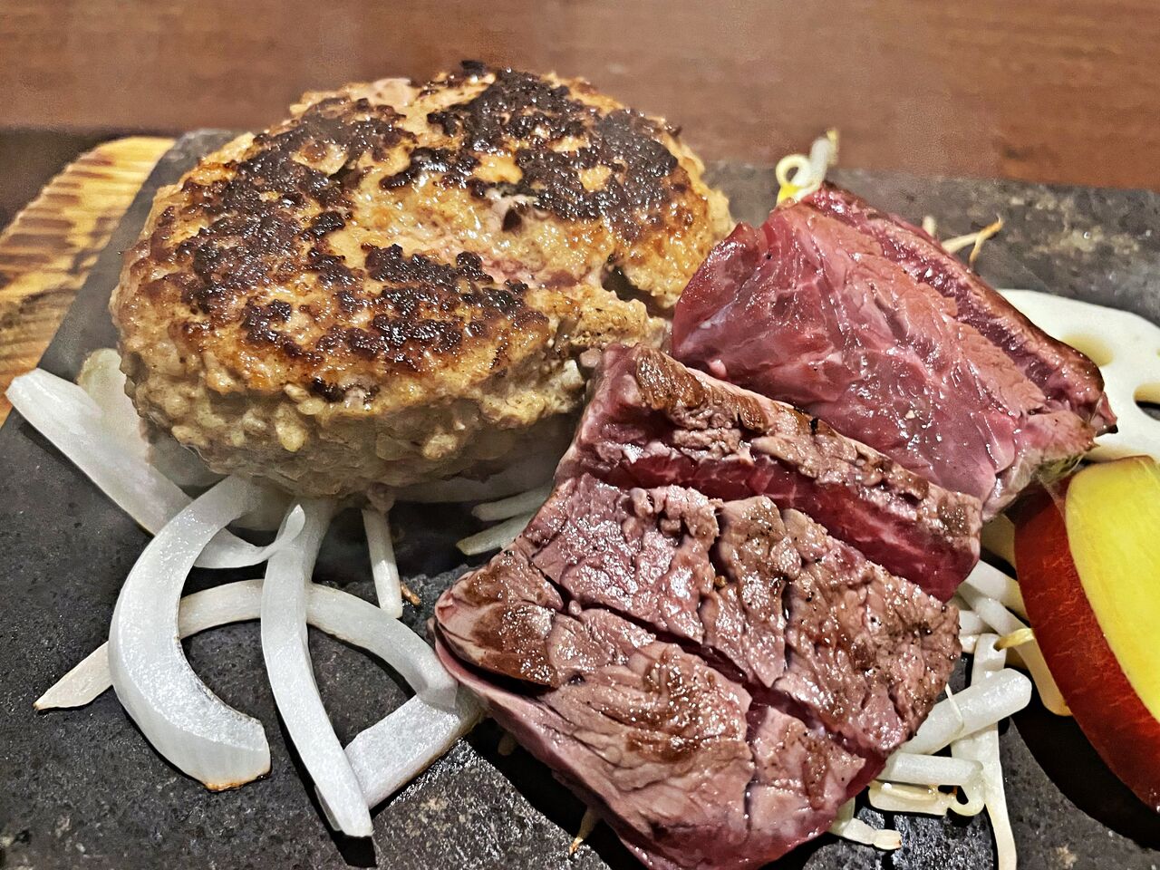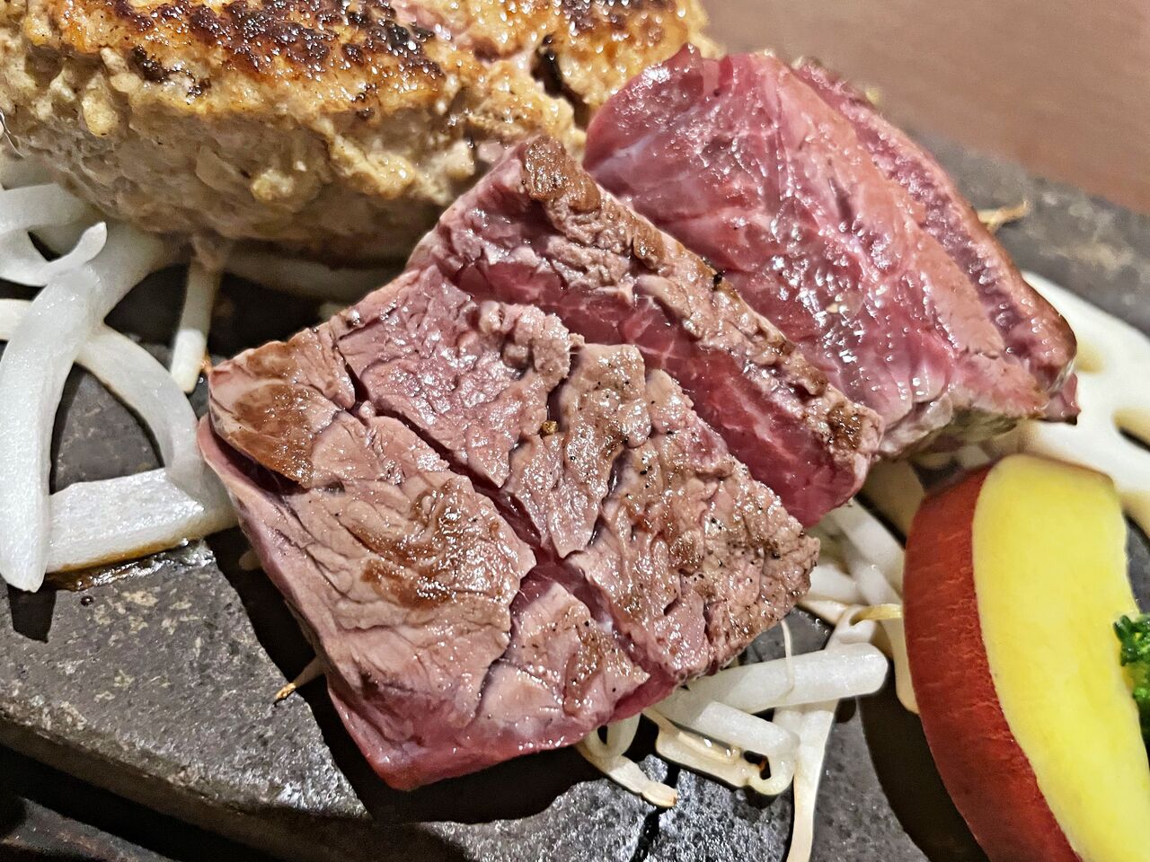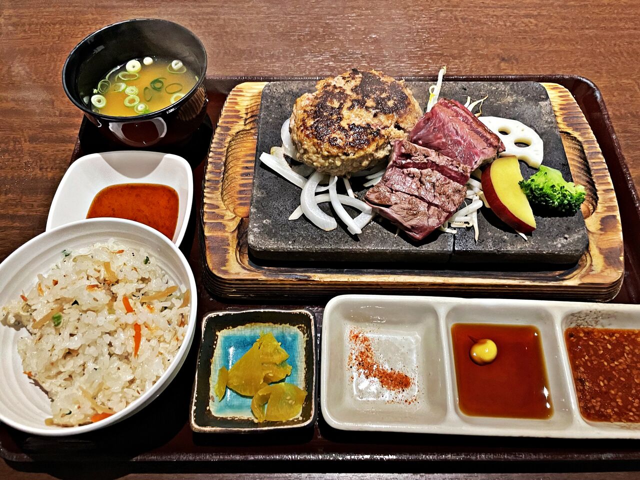 ハンバーグも食べてみたかったのでステーキと両方が食べれるメニューにしました(^^)